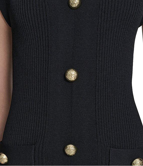Vince Camuto V-Neck Cap Sleeve Button Front Sweater Dress