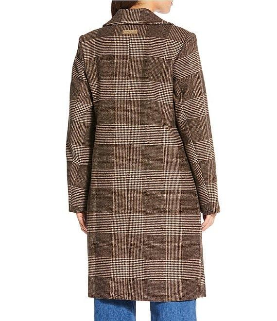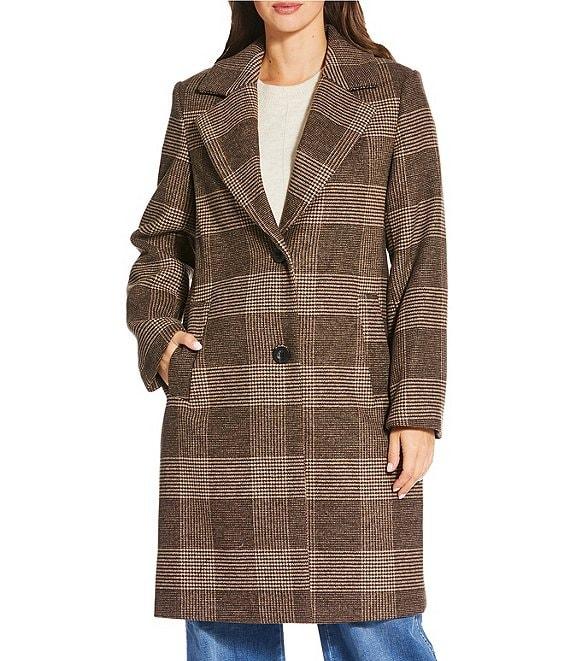 From Vince Camuto, this coat features: Wool blend fabrication Single breasted silhouette Plaid print Notch collar neckline Long sleeves Front welt pockets Straight fit Fully lined Straight hemline Button front closure Approx. 38.5" length Polyester/wool/other fibers; lining: polyester Dry clean Imported.