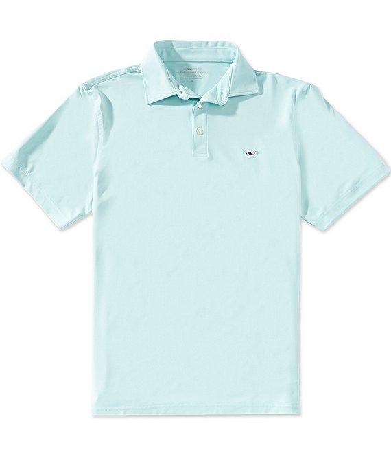 From Vineyard Vines, this polo shirt features: Solid tone Polo collar with built-in collar stays Short sleeves 3-button placket "Whale" logo embroidered on the left side of chest Pullover construction Built-in stretch UPF 50 sun protection Quick drying Moisture wicking Wrinkle resistant Polyester/spandex Machine wash/tumble dry Imported.