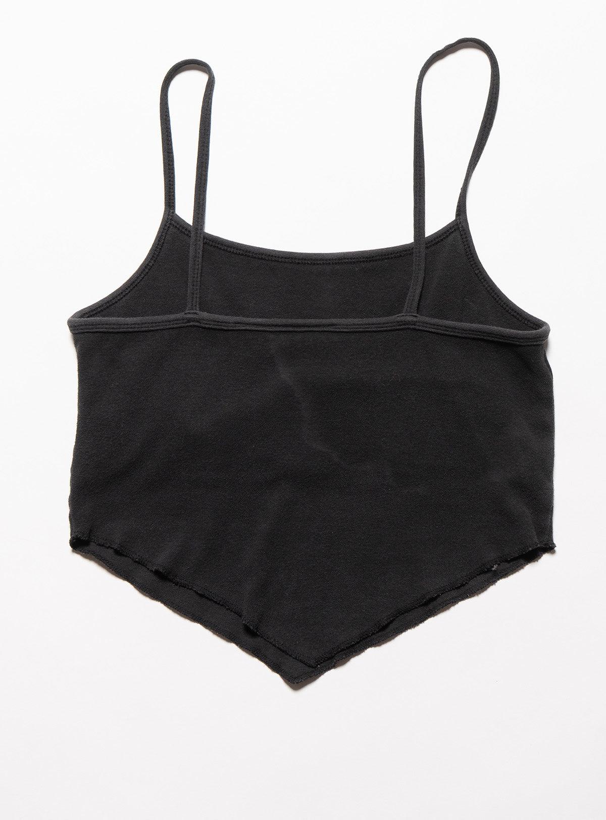 Cropped fit featuring a handkerchief cut in the front and back with a built in sports bra. 95% Cotton 5% Spandex Size M Measurements: pit to pit: 13.5" hps: 19.5" (from shoulder to bottom point of the hem) High Point Shoulder (HPS) is measured from the highest point of the shoulder to the bottom hem of the shirt ALL SALES ARE FINAL SKU: VINT-0044
