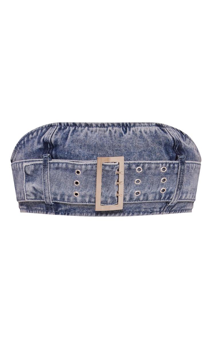 Make a statement this season in this vintage belted denim bandeau top. This top is brought to you in a vintage denim material that will have you nailing all the major trends this season. With a bandeau design, this top has a flattering fit that will have you tapping into your confident side. Style with the matching denim mini skirt for the ultimate glam look everyone is obsessing over. Length approx 33cm/13inch (Based on a sample size UK 8) Model wears size UK 8/ EU 36/ AUS 8/ US 4Model Height - 5ft 8inchp]:!mb-4inch>Category: DenimProduct type: Denim TopColor: Vintage WashMaterial: Rigid DenimDesign: PrintOccasion: Day