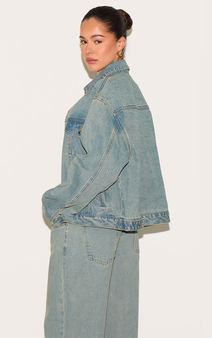 Say hello to your new season staple with this vintage blue oversized classic denim jacket. Featuring a vintage blue classic denim material with an oversized fit and refined structure, this blue oversized classic denim jacket will instantly elevate your outfit of the day. Style this jacket with jeans and a basic t-shirt to elevate the look.Length approx 48.5cm/19inch (Based on sample size US 4)Model wears size UK 8/ EU 36/ AUS 8/ US 4Model Height - 5ft 8inchp]:!mb-4inch>Brand: PrettyLittleThingCategory: DenimProduct type: Oversized denim jacketColor: Vintage WashMaterial: Rigid DenimSleeves: LongOccasion: Day
