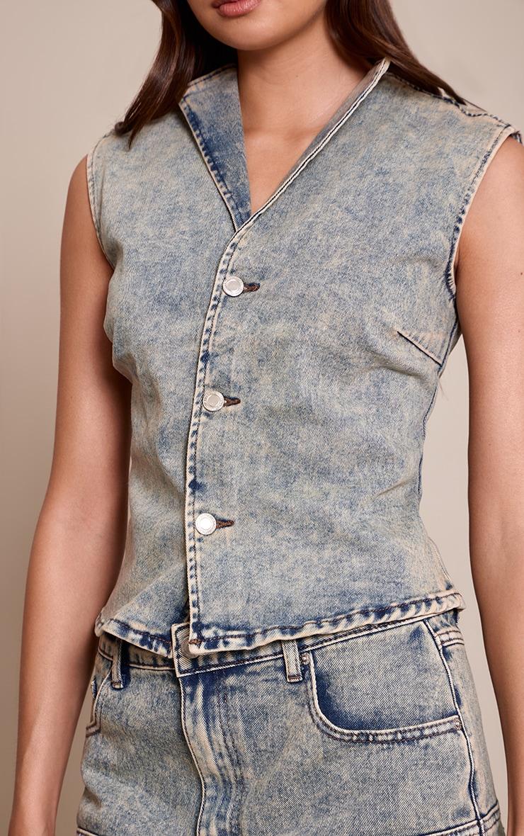 Keep it classic with the vintage blue sleeveless denim shirt. Made from a vintage blue denim material, this shirt features sleeveless styling and button-down detailing. Style with the matching shirt, gold accessories and slip-on heels for a fresh take on denim.Length approx 48.5cm/19inch (Based on sample size US 4)Model wears size UK 8/ EU 36/ AUS 8/ US 4Model Height - 5ft 7inchp]:!mb-4inch>Brand: PrettyLittleThingCategory: DenimProduct type: TopColor: Vintage WashMaterial: Stretch DenimNeckline: ShirtSleeves: SleevelessOccasion: Day