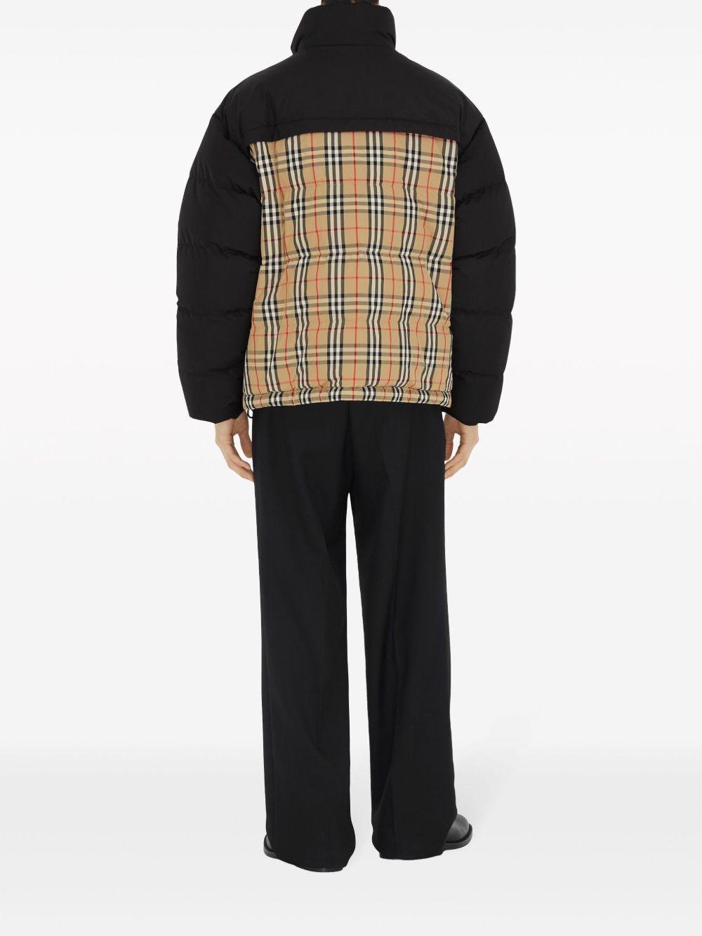 Burberry Vintage check-pattern reversible padded jacket | Black | black/beige | goose down | Vintage Check pattern | reversible | funnel neck | long sleeves | concealed front fastening | straight hem | Polyester/Goose Down/Goose Feather/Polyamide/Polyester | Down Jackets | Jackets | Clothing | Men