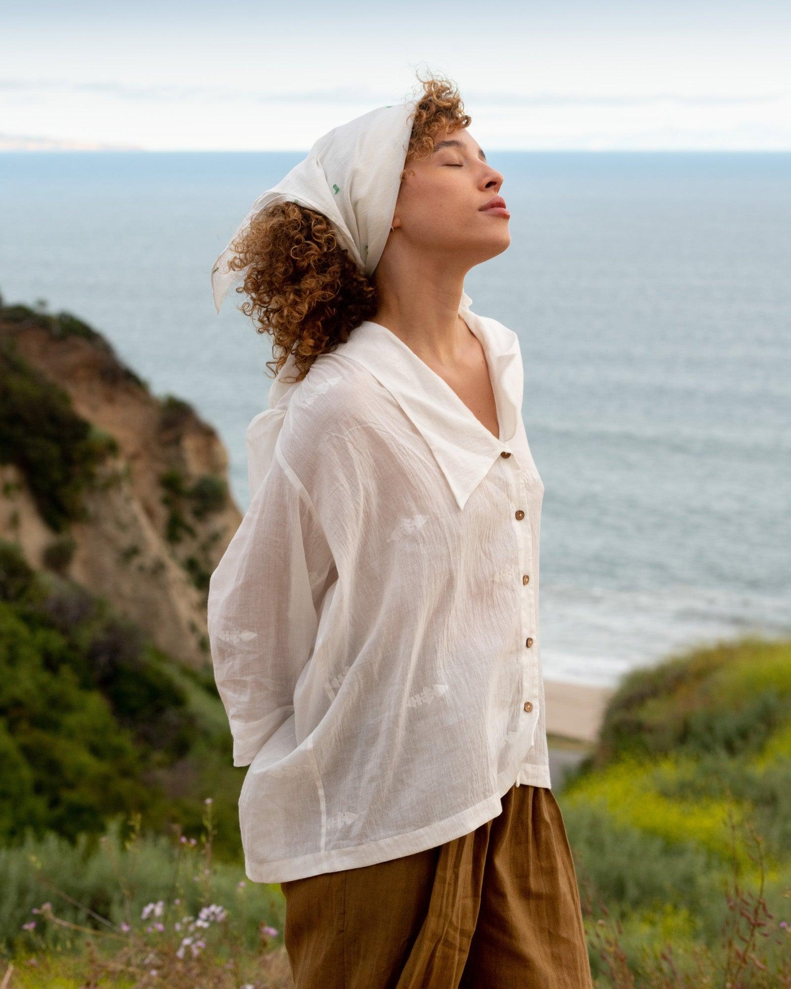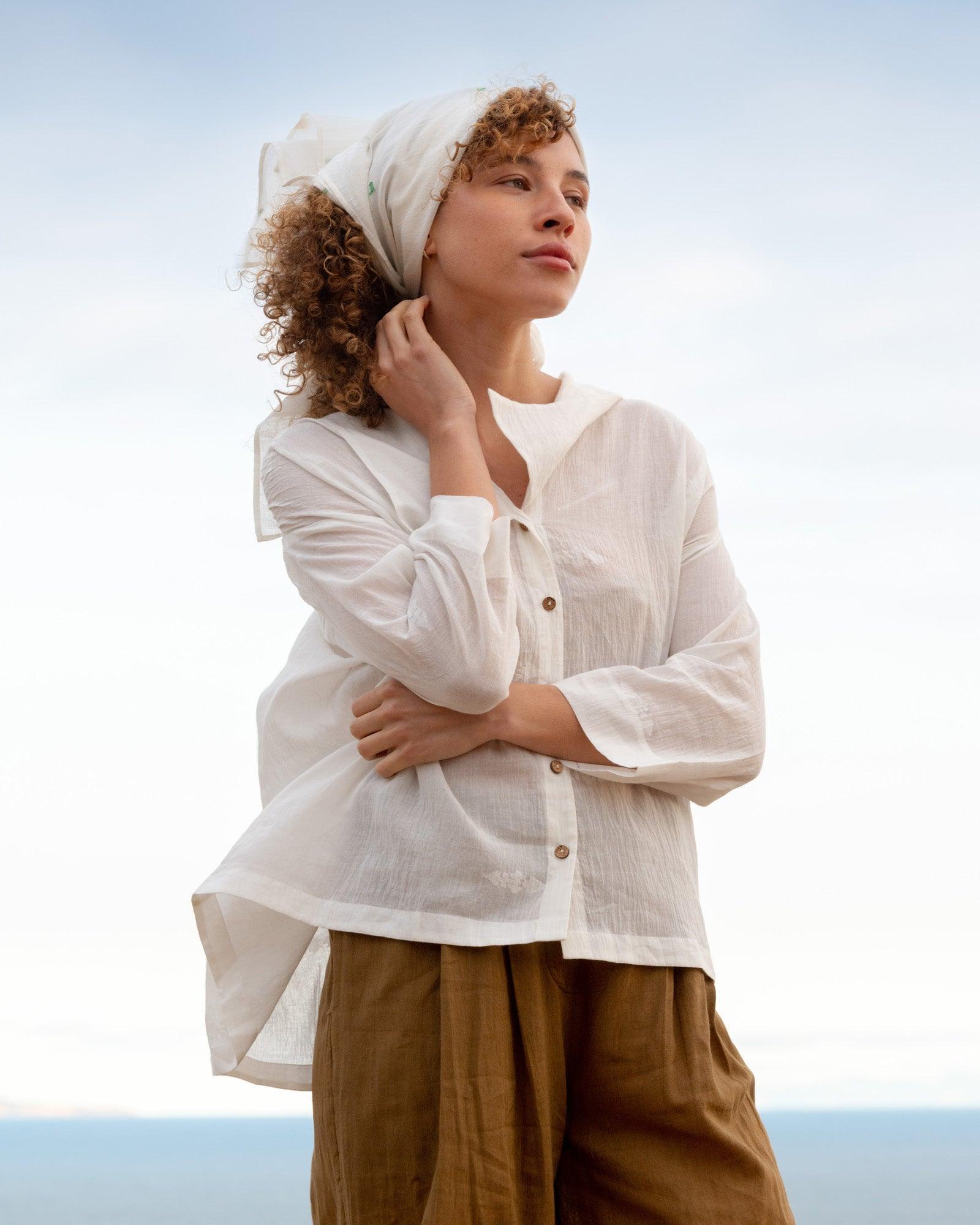 Made from soft handwoven cotton in a crisp white color, this shirt has a relaxed fit. Vintage design details like oversized chelsea collar, soft gathers around the shoulder make it a must-have for an everyday casual look. Simply pair the shirt with your favorite jeans or shorts for all-day ease. Style with Relaxed Cotton Pants
