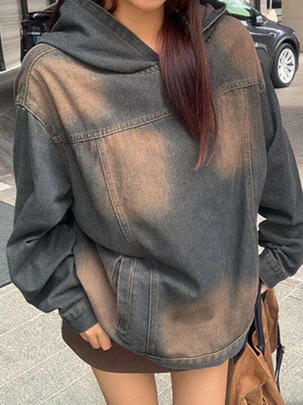 Vintage Graphic Print Zip Up Oversized Hoodie