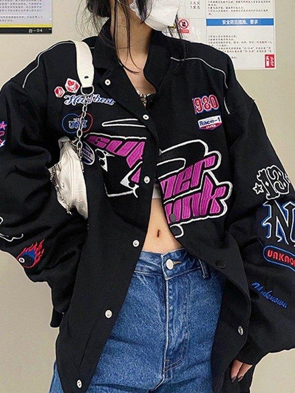 Vintage Embroidered Button Down Motorcycle Varsity Jacket