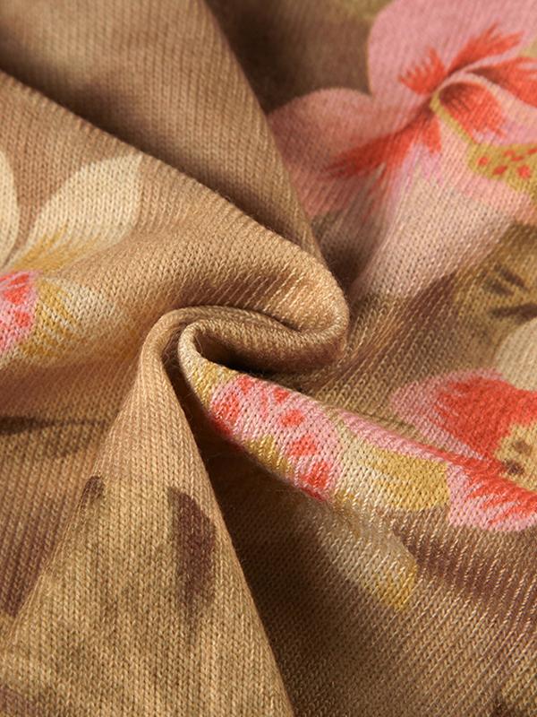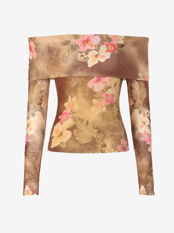 Vintage Floral Print Off-The-Shoulder Top Long Sleeve