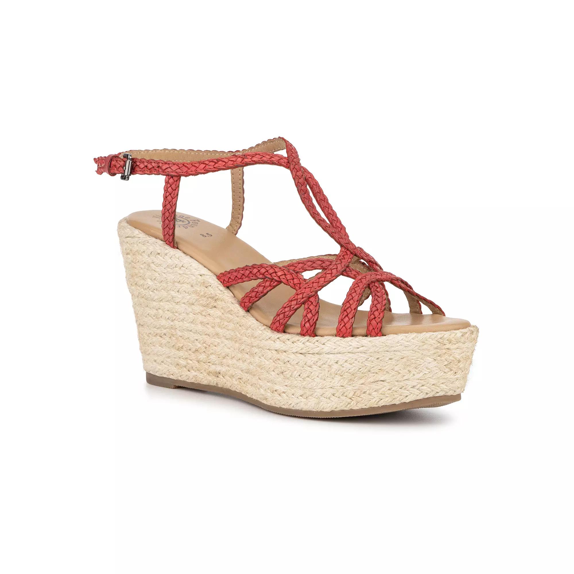 The kind of shoe your feet will feel relaxed in, while not compromising the classy and sophisticated look of dressing easy. Distressed fabric is in, while stressing for what to wear is out. The Sabrina Peep Toe Bootie definitely has your back. Upper: 100% Cow Leather, Outsole: 100% Rubber, Lining: 100% Leather, Heel height: 2.5", Shaft Height: 2.8", Shaft Circumference: 9.4" | Vintage Foundry Co Eloise Wedge, Tan, 9.5M