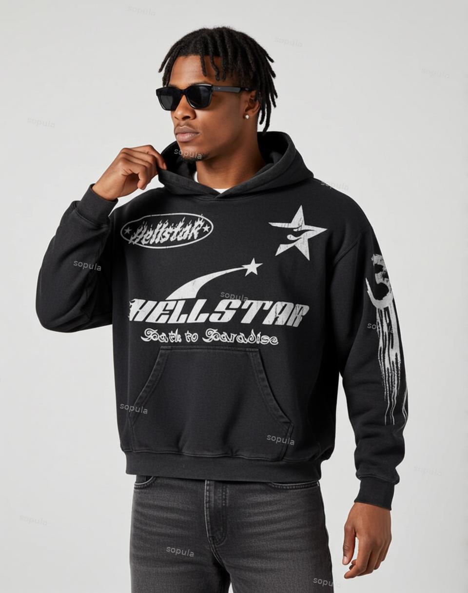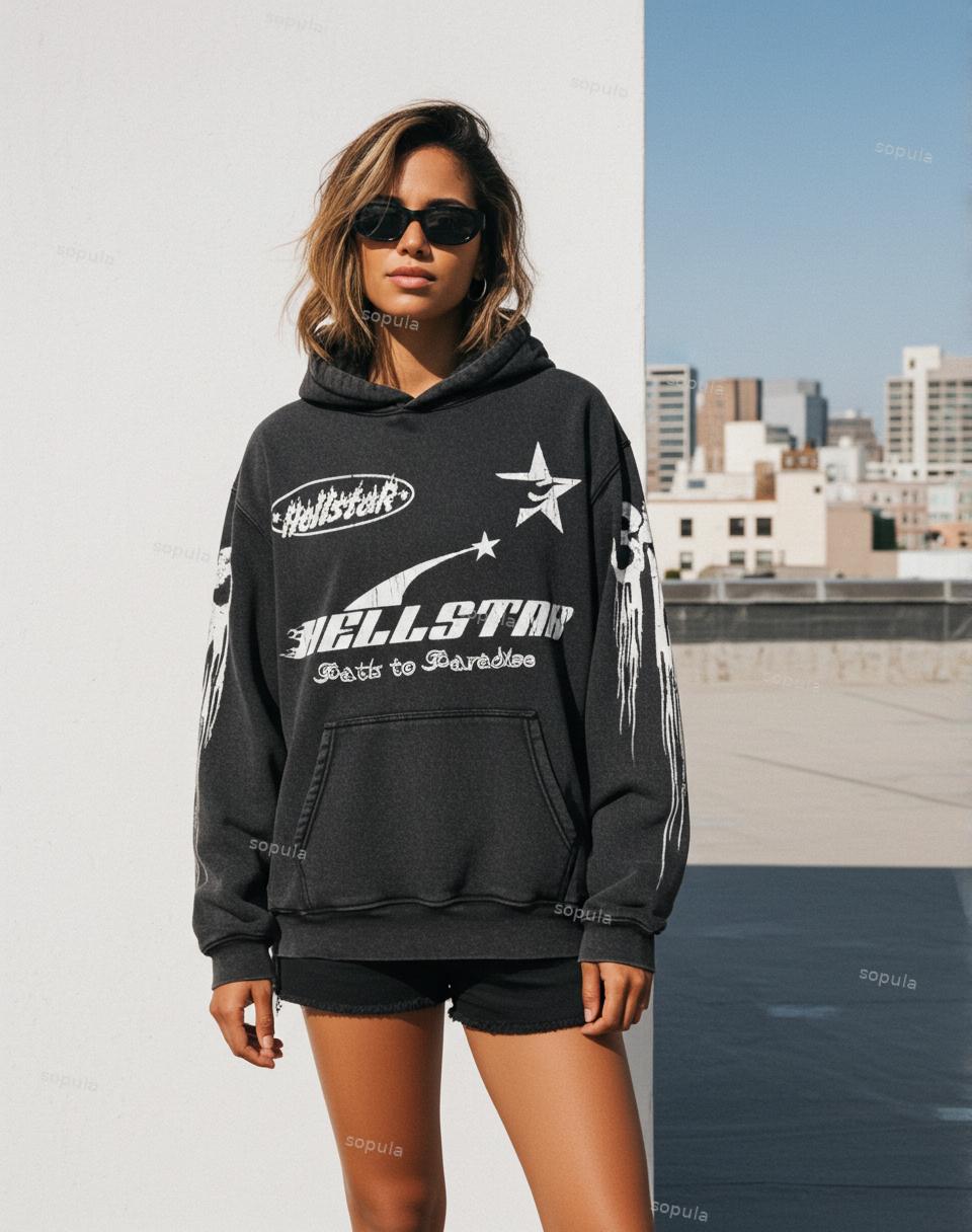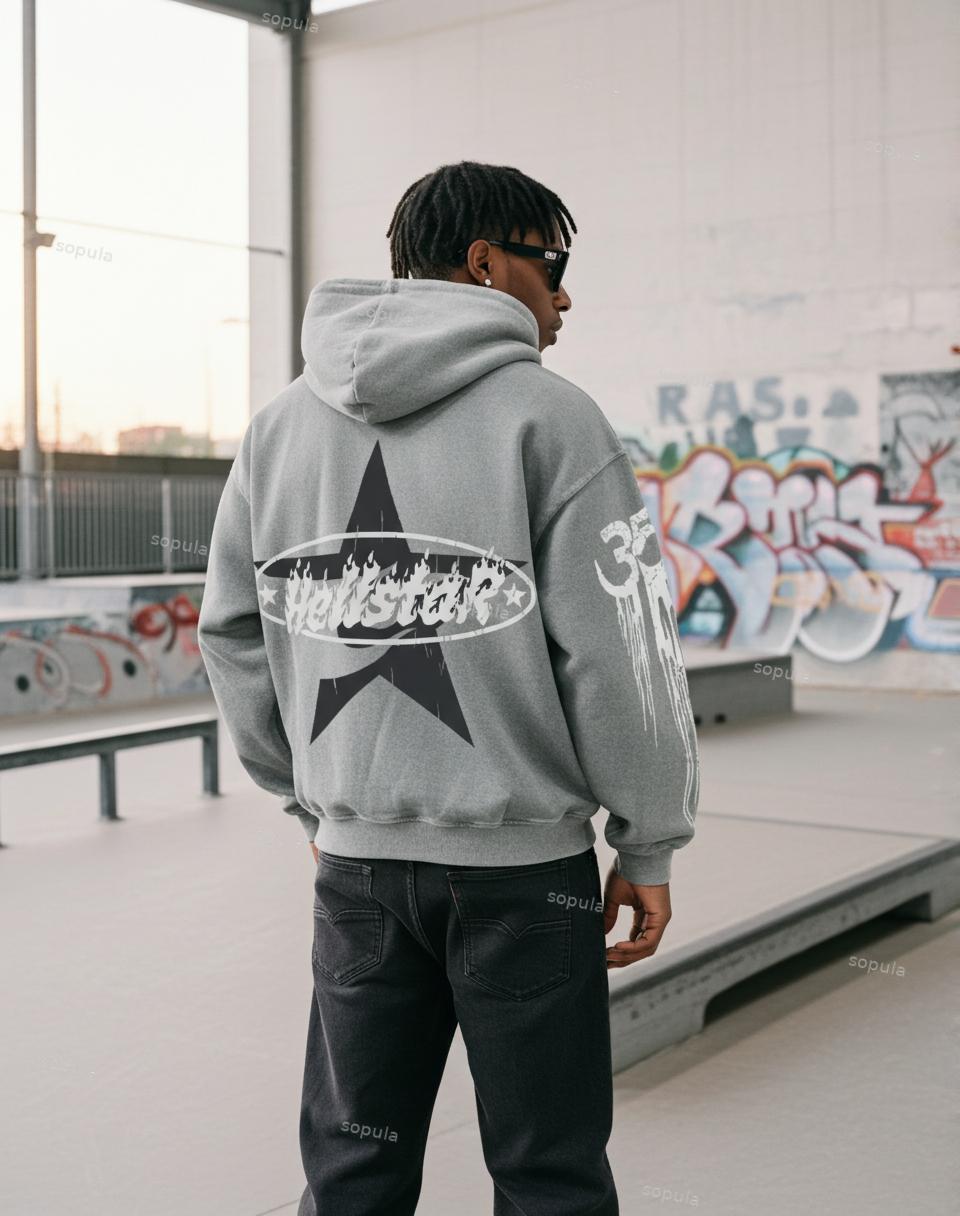 Vintage Hell Star Graphic Acid Washed Oversized Hoodie. SPU: CP-183194-LSX Fabric Name: 100% Cotton Pattern: Hell Star Graphic Process: Printed Style: Vintage Length: Regular Collar: Hoodie Collar Popular Elements: Acid Washed, Pocket Sleeve Type: Drop Shoulder Sleeve Occasion: Daily, Street Theme: Spring, Fall, Winter
