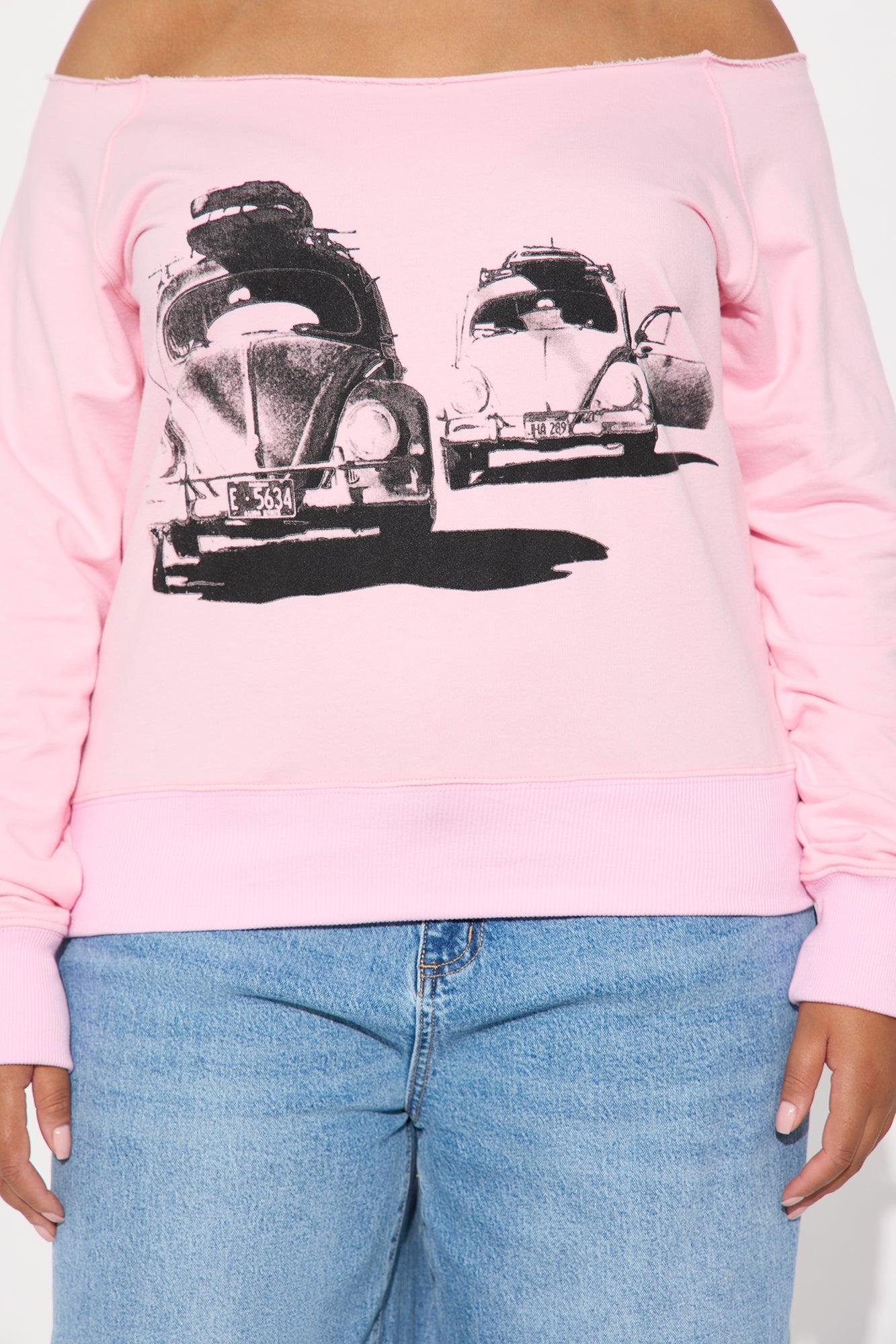 Vintage Highway Cruise Off Shoulder Sweatshirt - Pink