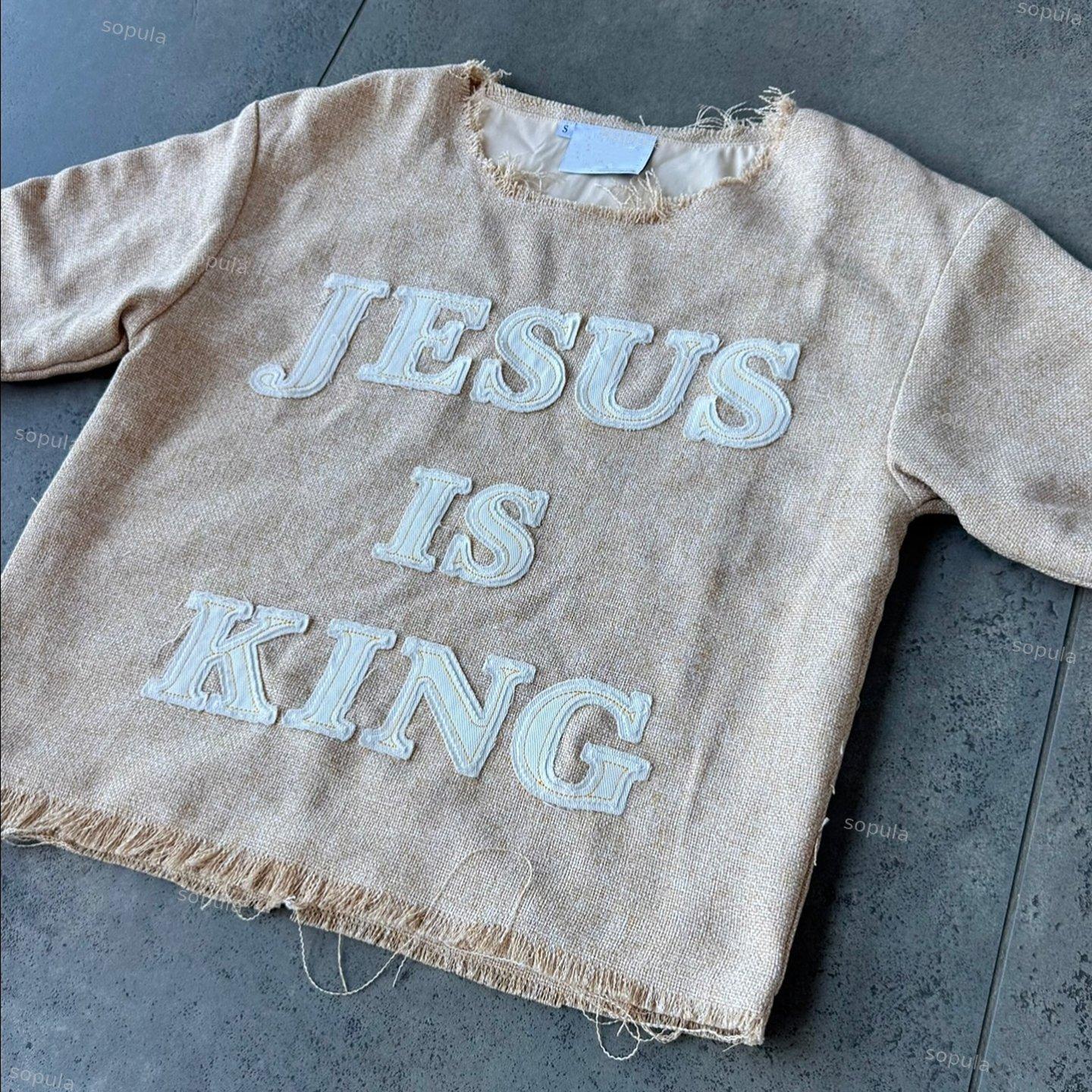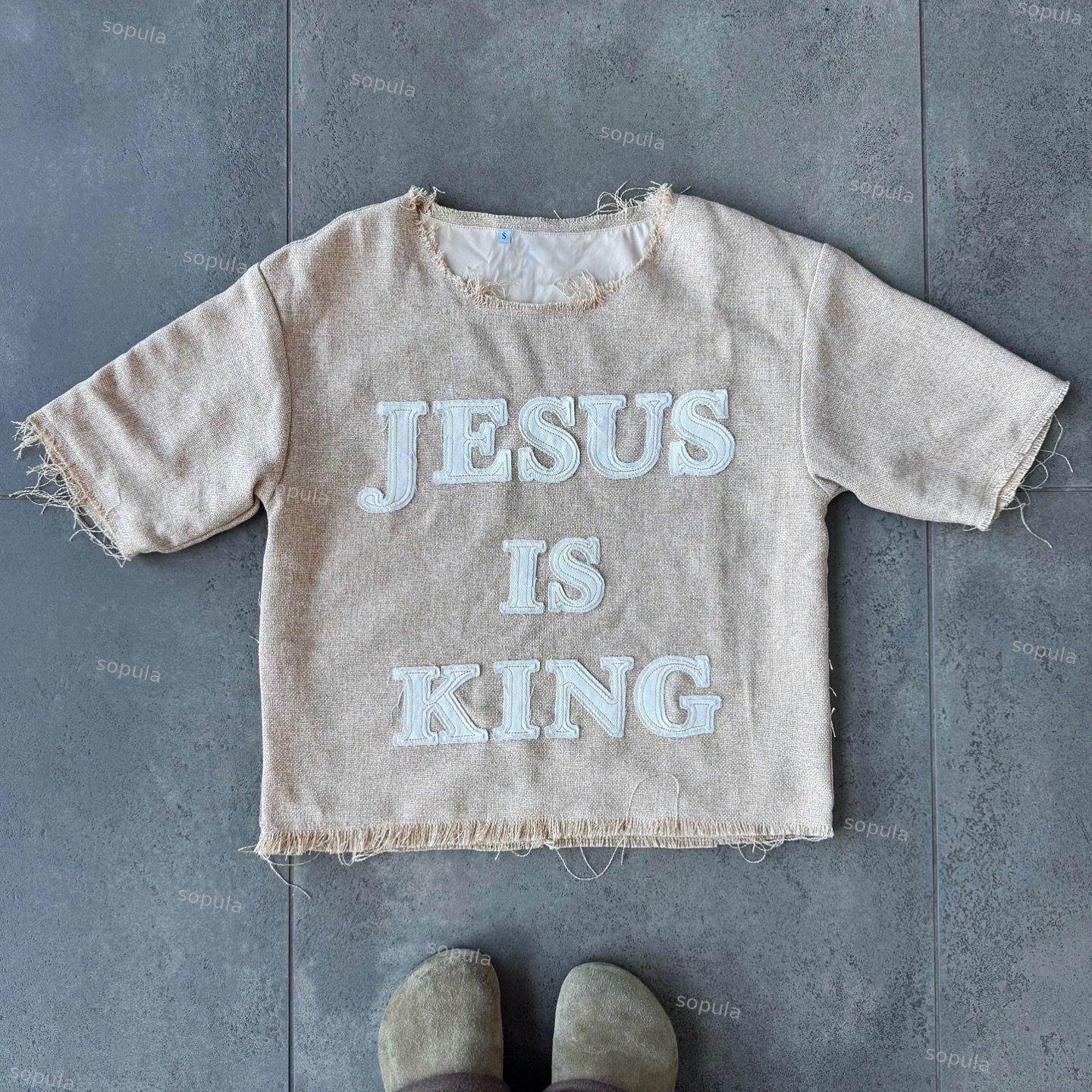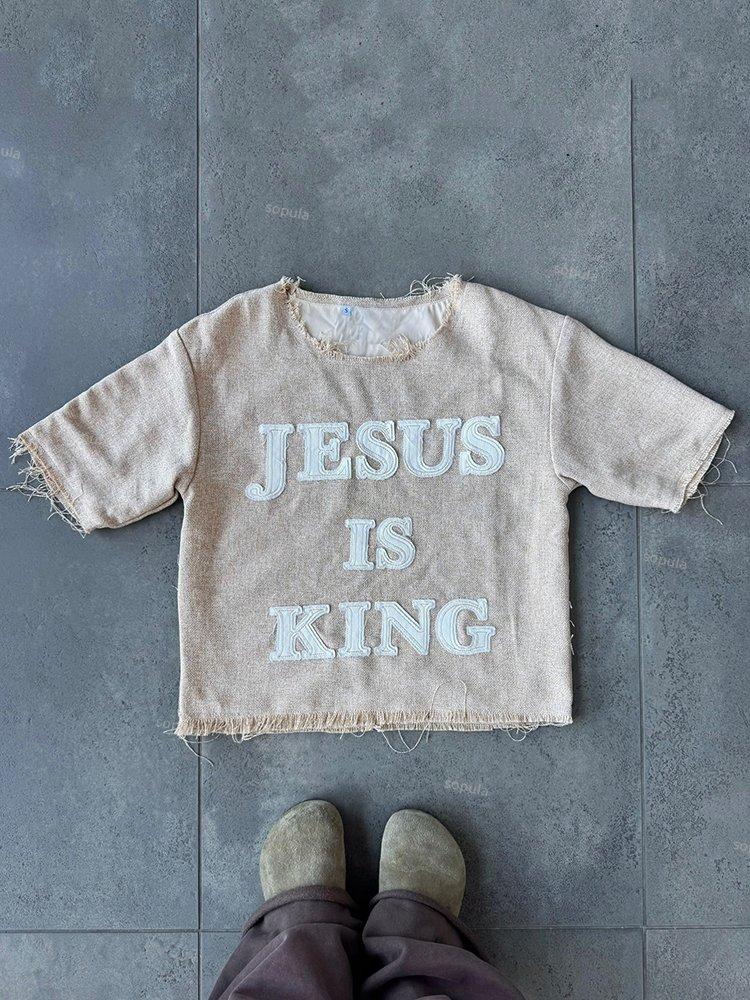 Vintage Jesus Is King Graphics College Style T-shirt