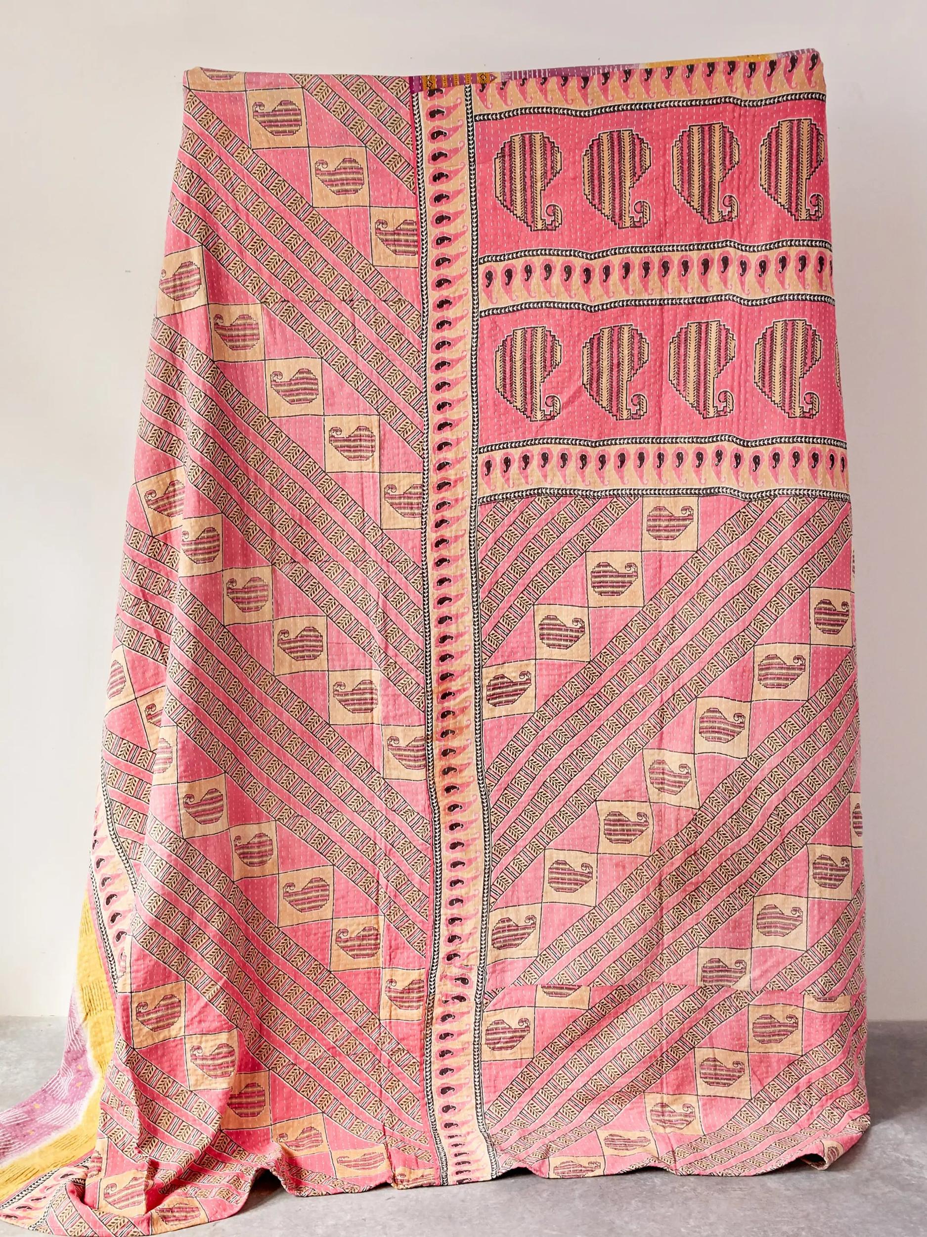 They are made of old sari's from India! Each one is hand Kantha stitched and unique making each one so special!