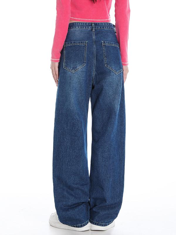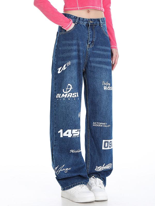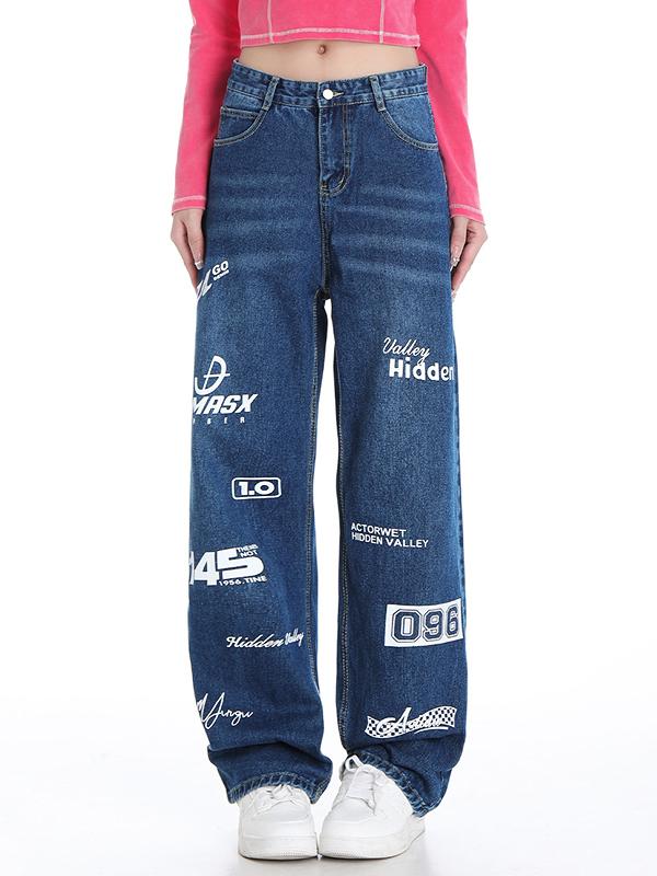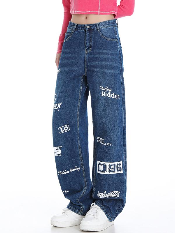 Vintage Letter Print High Rise Boyfriend Jeans