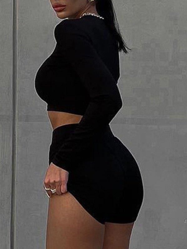 Vintage Long Sleeve Crop Top Midi Skirts Set