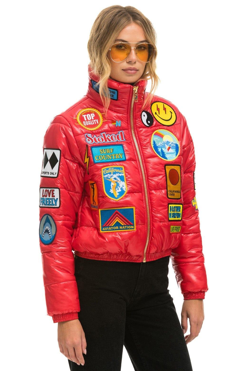 Standing out just got even easier. This puffer includes the raddest patches, hand-stitched in LA. Guaranteed show stopper. This jacket will keep the compliments rolling in while keeping you warm. Filled with a lofty 200 gsm powerfill using our new downlike synthetic insulation to keep you warm, included inside the collar to go above and beyond. This insulated jacket was built for those perfect crisp mornings. We included a hidden interior phone pocket, extra deep hand pockets, and elastic cuffs to keep out the cold. -65% Polyester / 33% viscose / 2% lyrica -Hand quilted locally in Los Angeles -Hand wash in cold water inside out / Do not use bleach or fabric softner / Tumble dry on low heat or airdry indoors / Do not iron or dry clean