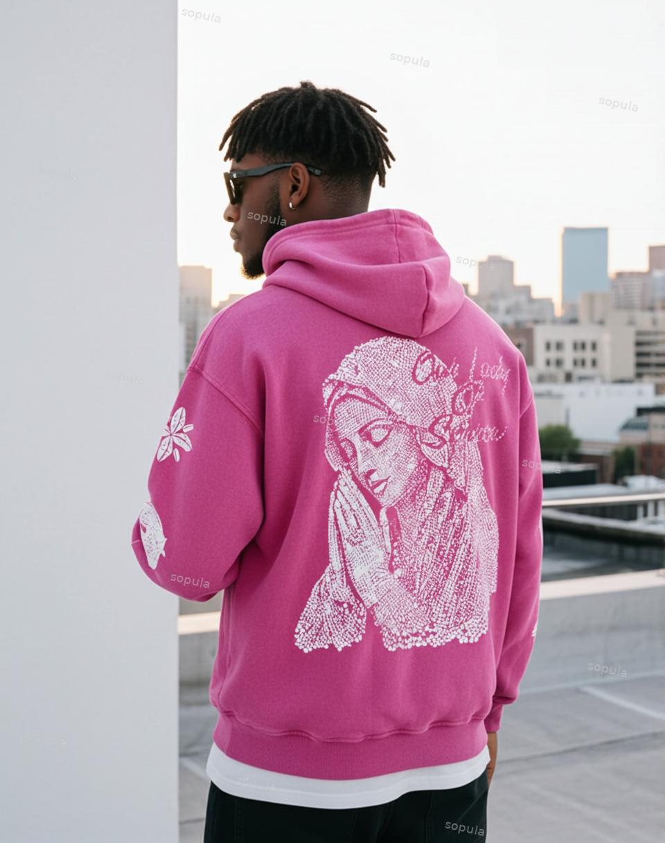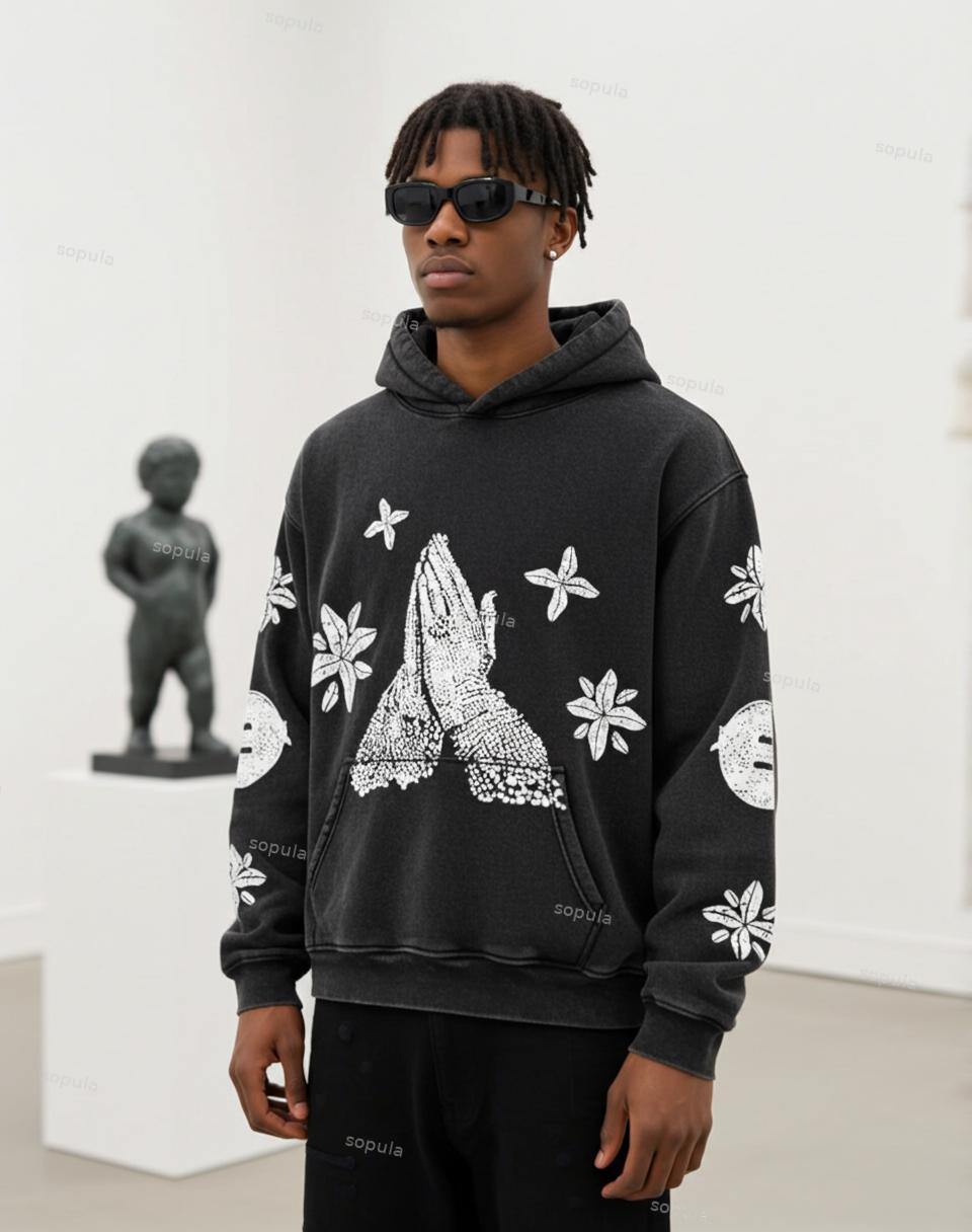 Vintage Prayer Madonna Graphic Acid Washed Oversized Hoodie. SPU: CP-179362-QX Fabric Name: 60 % Cotton-40% Polyester Pattern: Madonna Graphic Process: Printed Style: Vintage Length: Regular Collar: Hoodie Collar Popular Elements: Acid Washed Sleeve Type: Drop Shoulder Sleeve Occasion: Daily, Street Theme: Spring, Fall, Winter