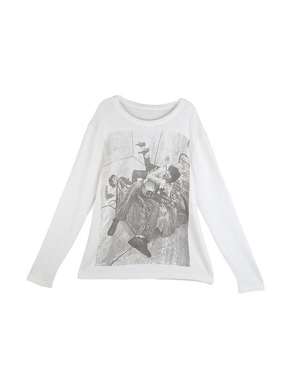 Vintage Print Ribbed Loose Long Sleeve Knit