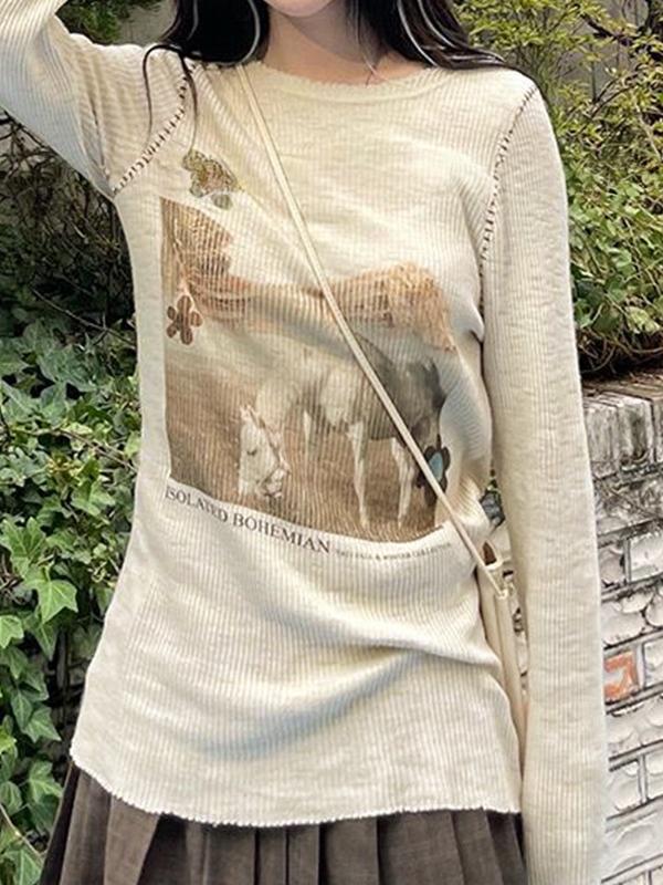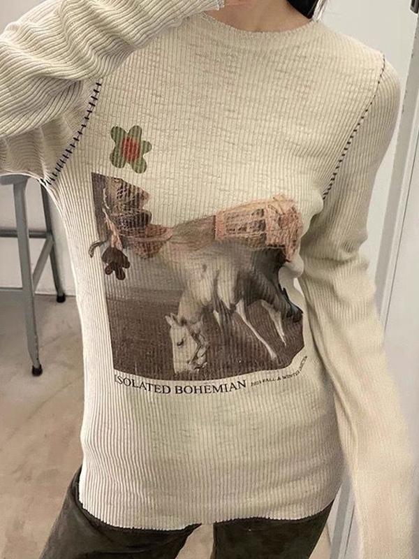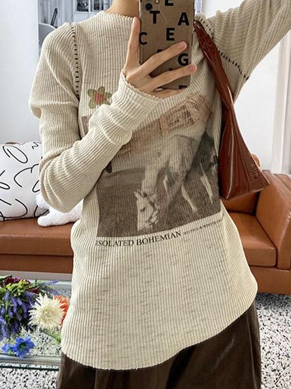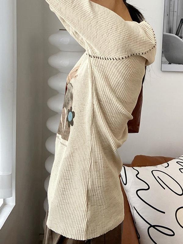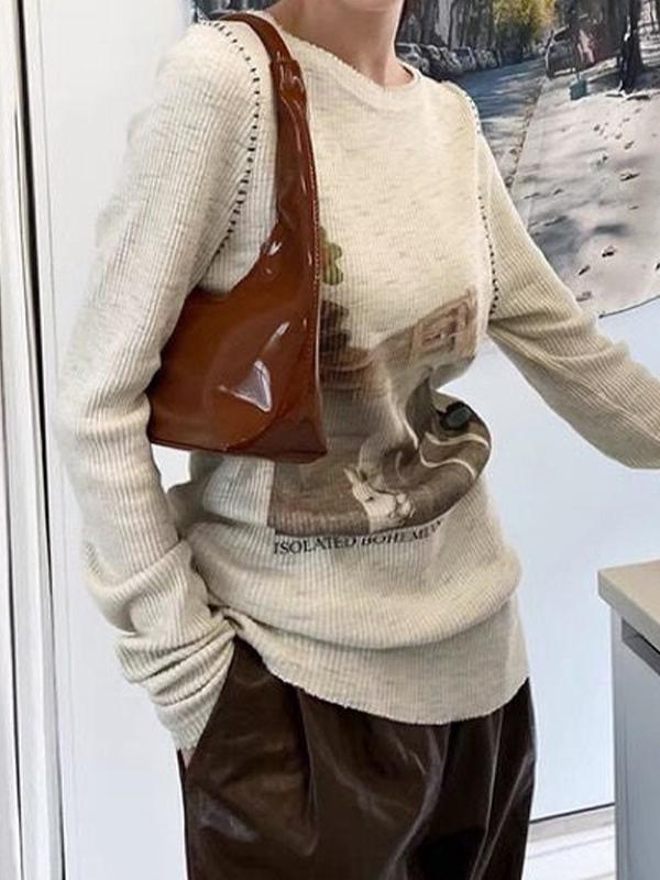 Vintage Print Stitch Detail Long Sleeve Knit