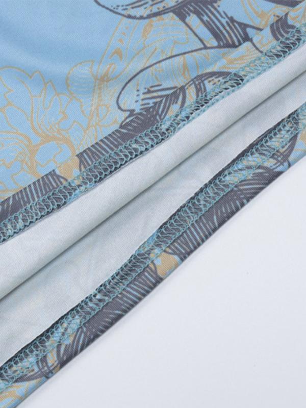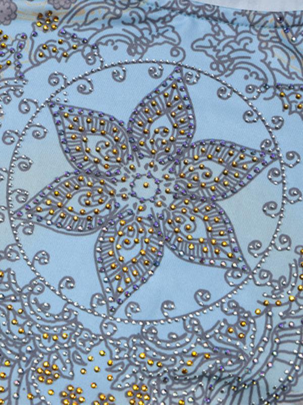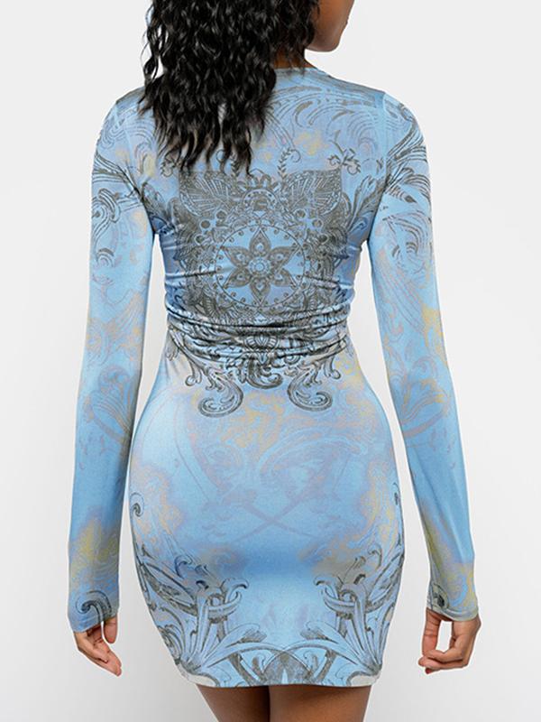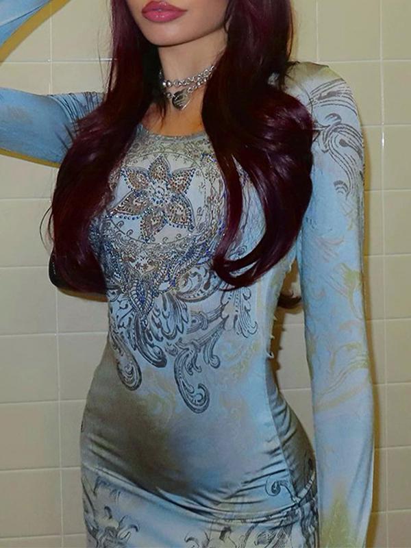Vintage Rhinestone Print Long Sleeve Mini Dress