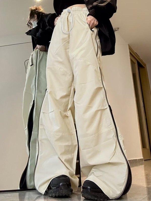 Vintage Side Zipper Parachute Wide Leg Pants