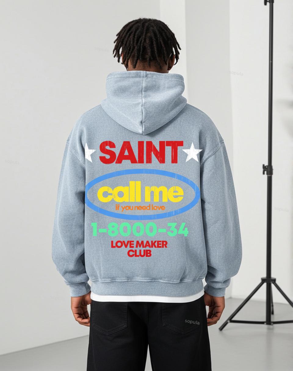 Sopula Vintage Saint Call Me If You Need Love Graphic Acid Washed Oversized Hoodie. SPU: CP-189271-LSX Fabric Name: 100% Cotton Pattern: Saint Letter Graphic Process: Printed Style: Vintage Length: Regular Collar: Hoodie Collar Popular Elements: Acid Washed, Pocket Sleeve Type: Drop Shoulder Sleeve Occasion: Daily, Street Theme: Spring, Fall, Winter
