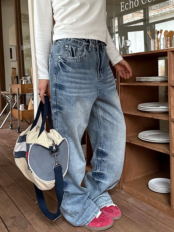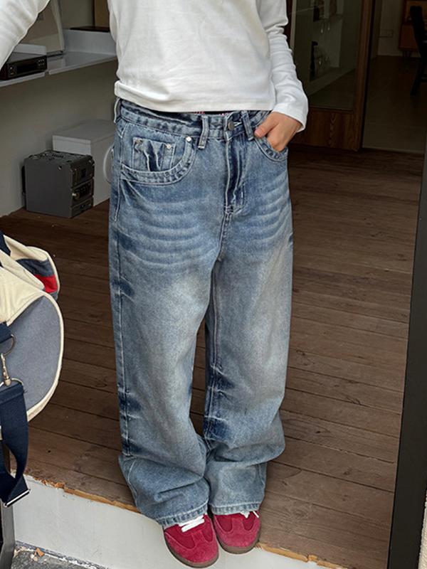 Vintage Split Straight Boyfriend Jeans
