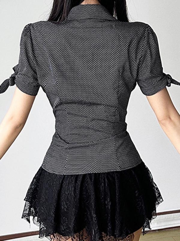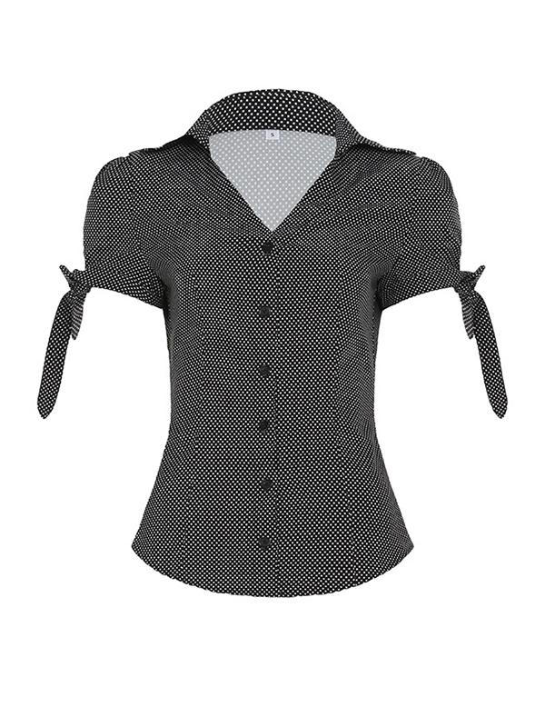 Vintage Style Bow Tie Lapel Short Sleeves Shirts