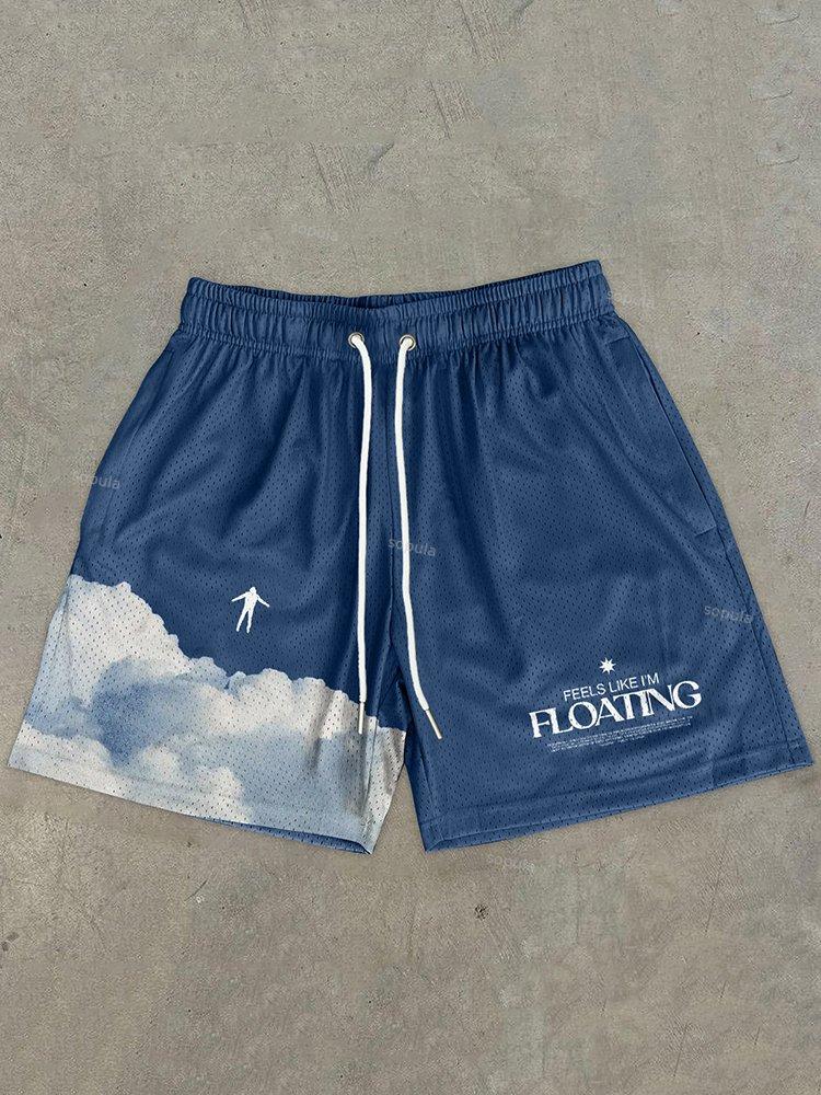 Vintage Stylish Feels Like I'm Floating Graphic Casual Street Mesh Shorts