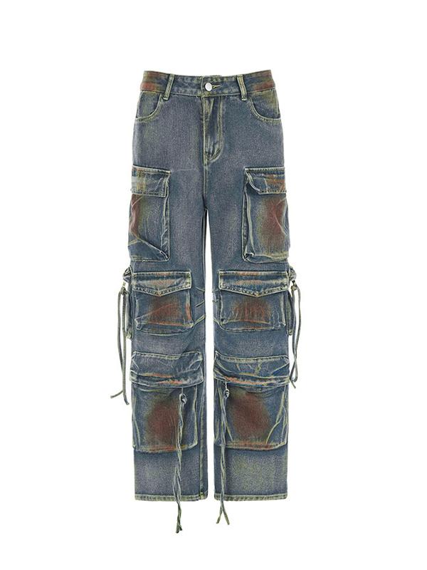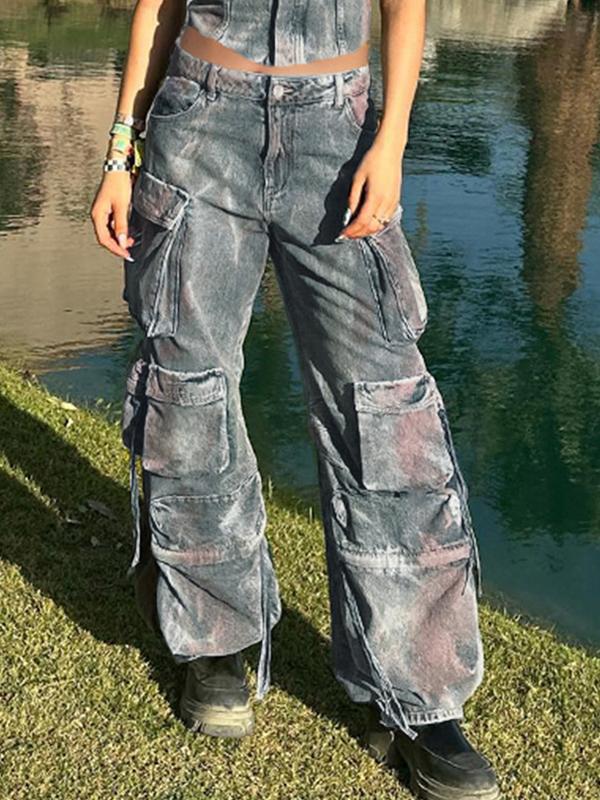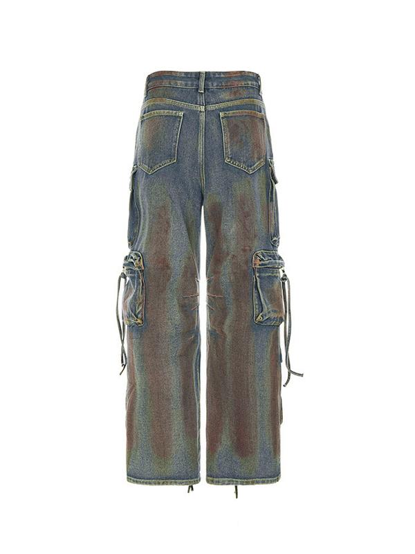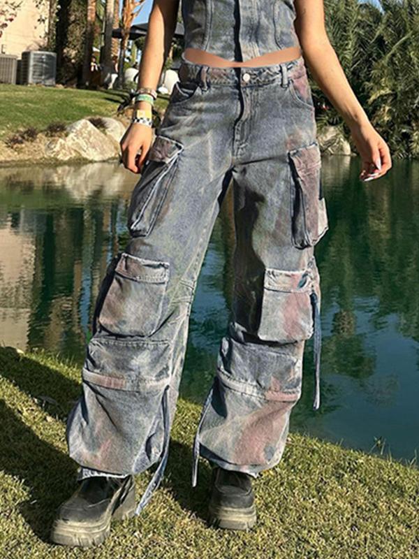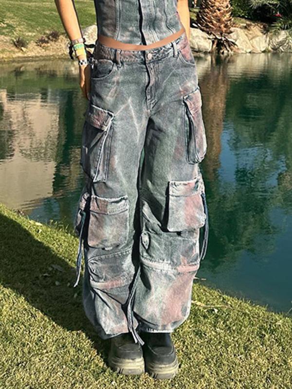 Vintage Tie Dye Multi Pocket Cargo Jeans