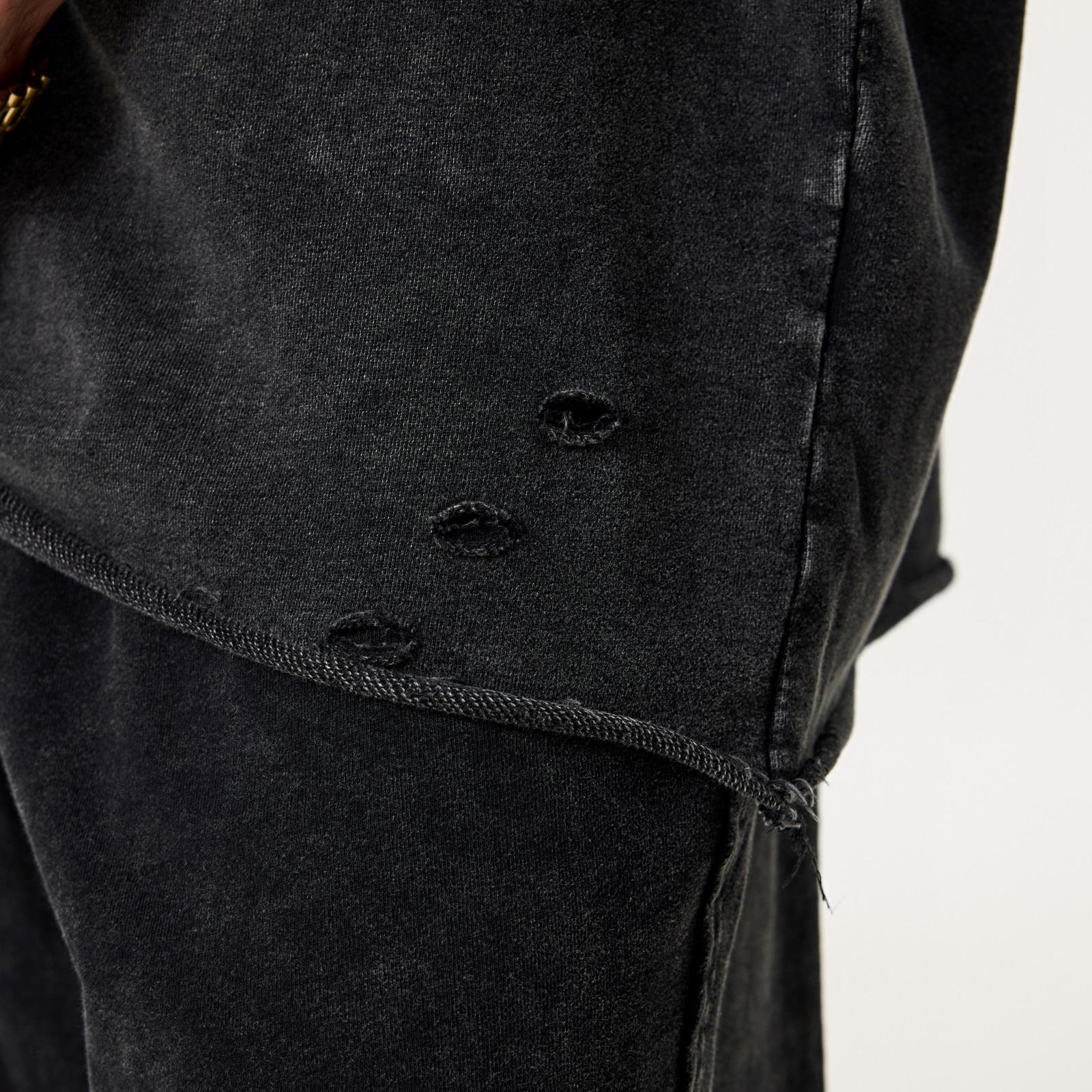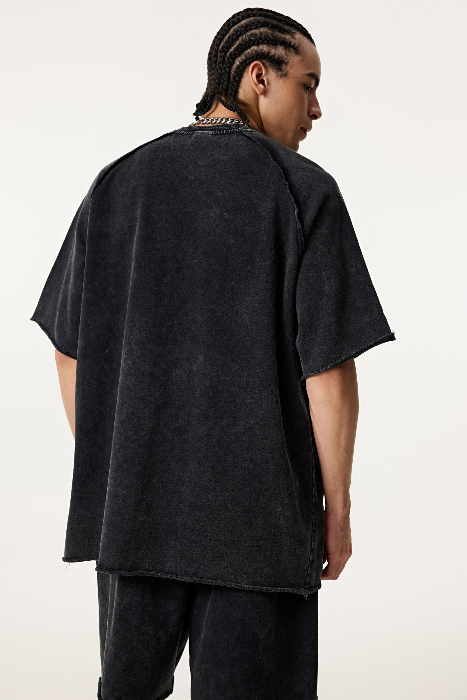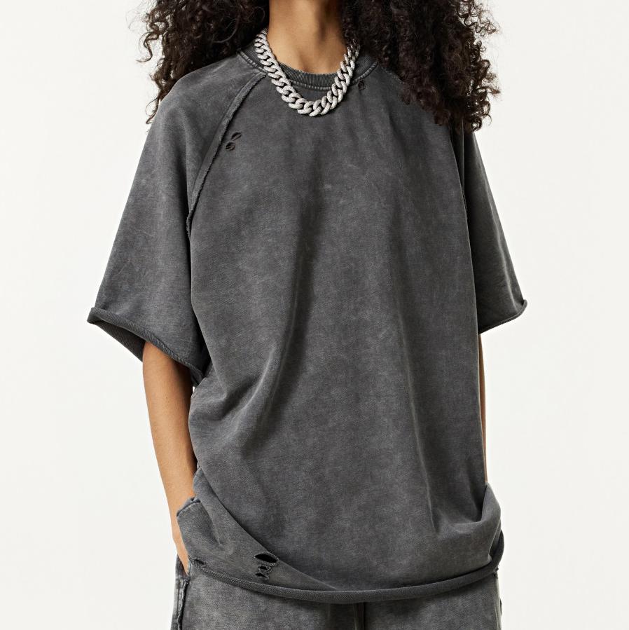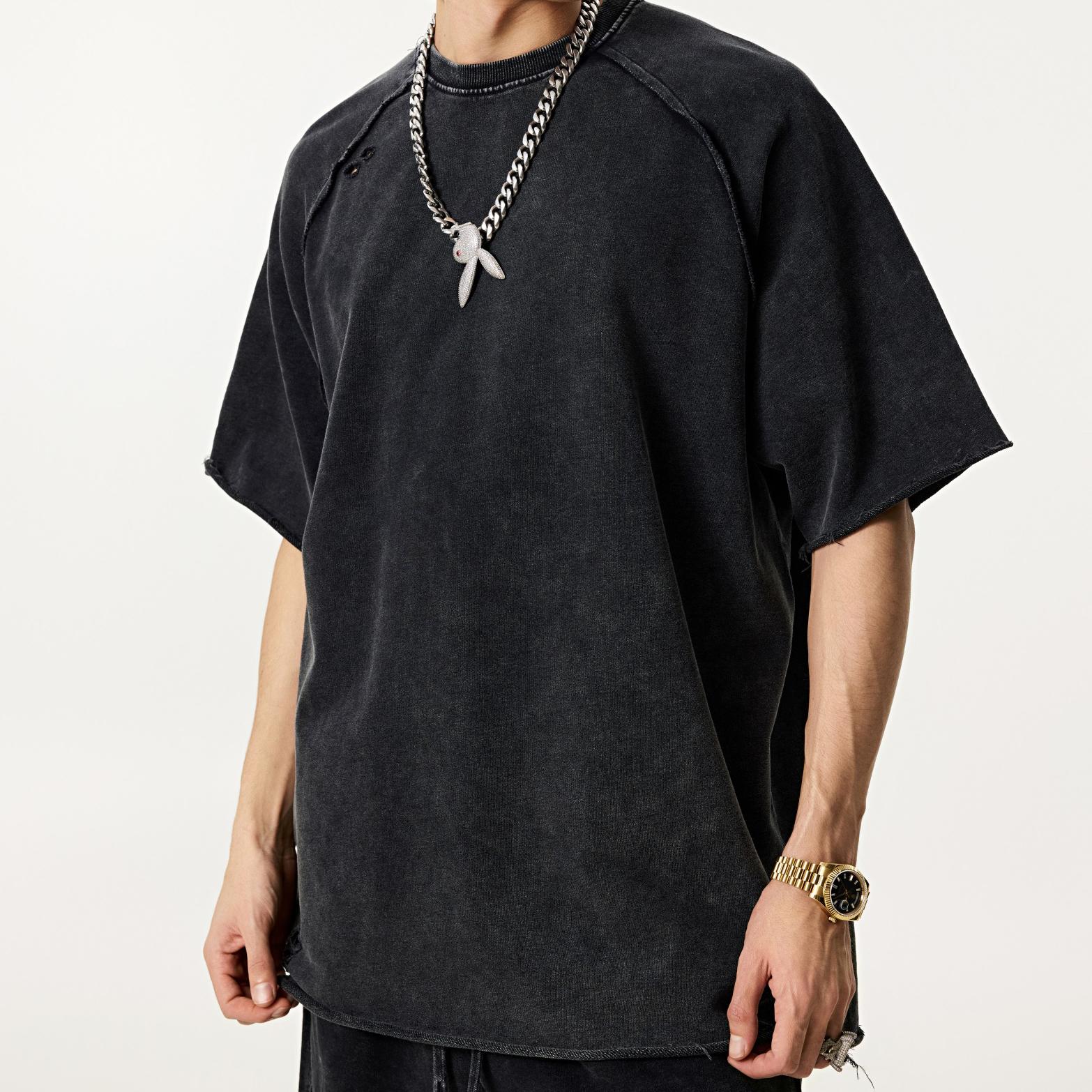 Vintage Washed Process Ragged Edge Destroyed Raglan Sleeve Tee