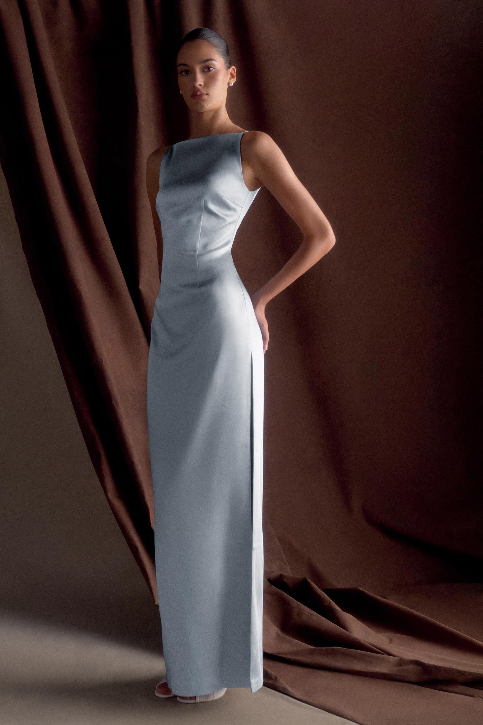 Violet Sleeveless Satin Maxi Dress - Frosted Blue