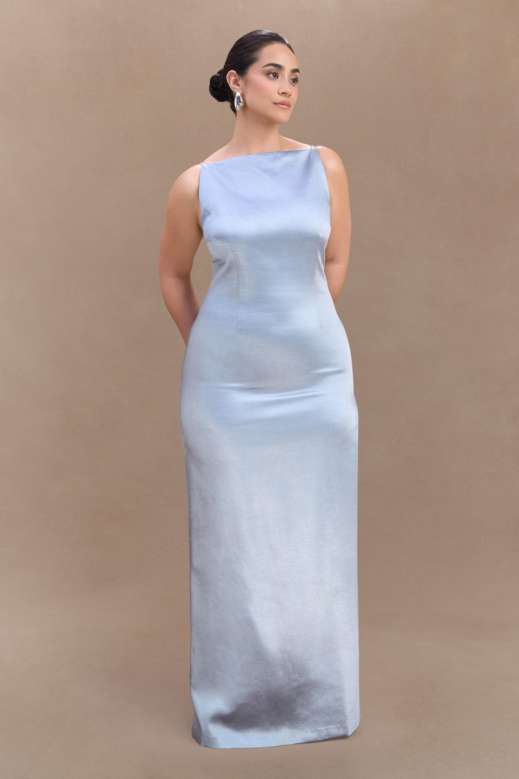 Violet Sleeveless Satin Maxi Dress - Frosted Blue Product Image