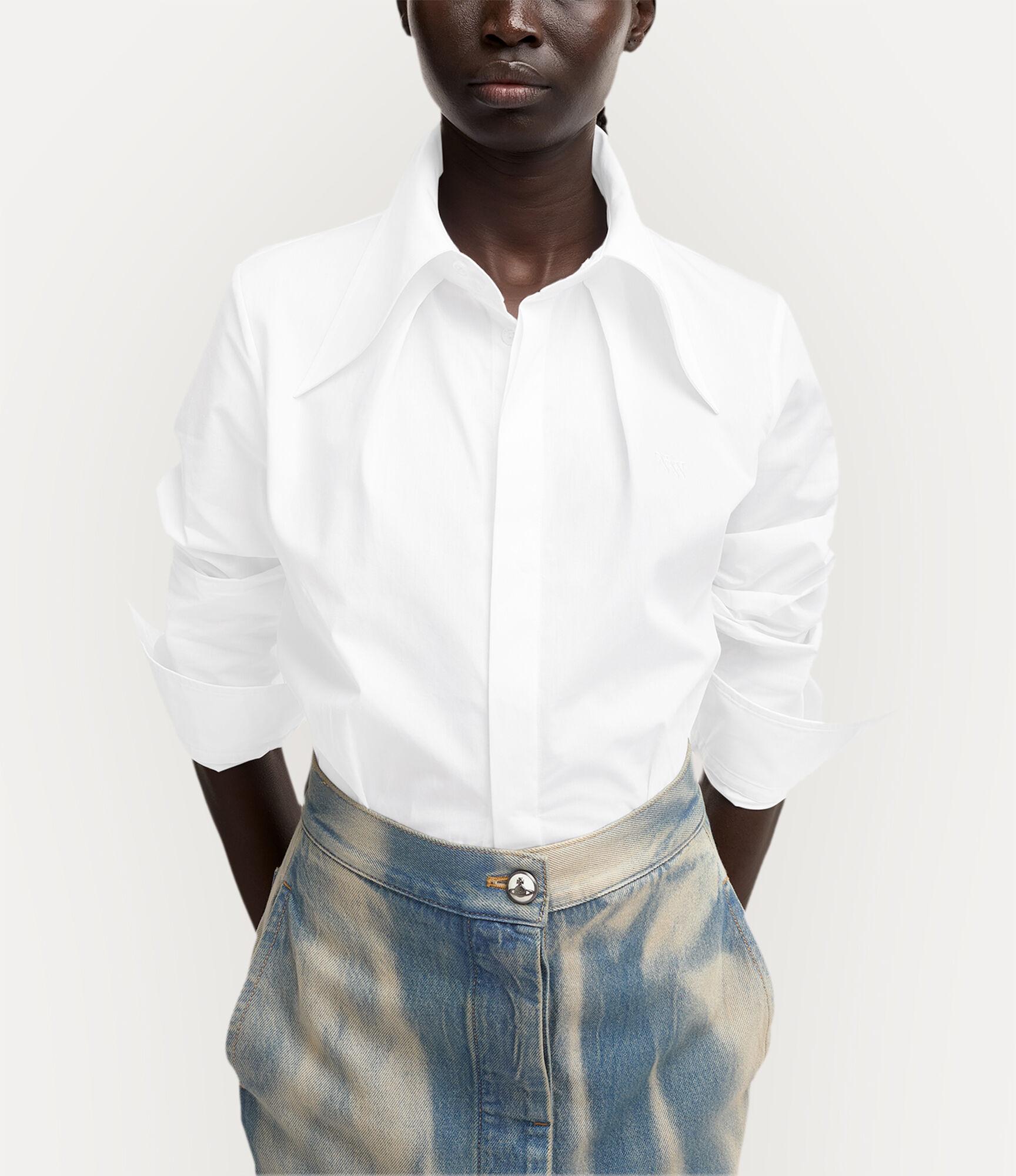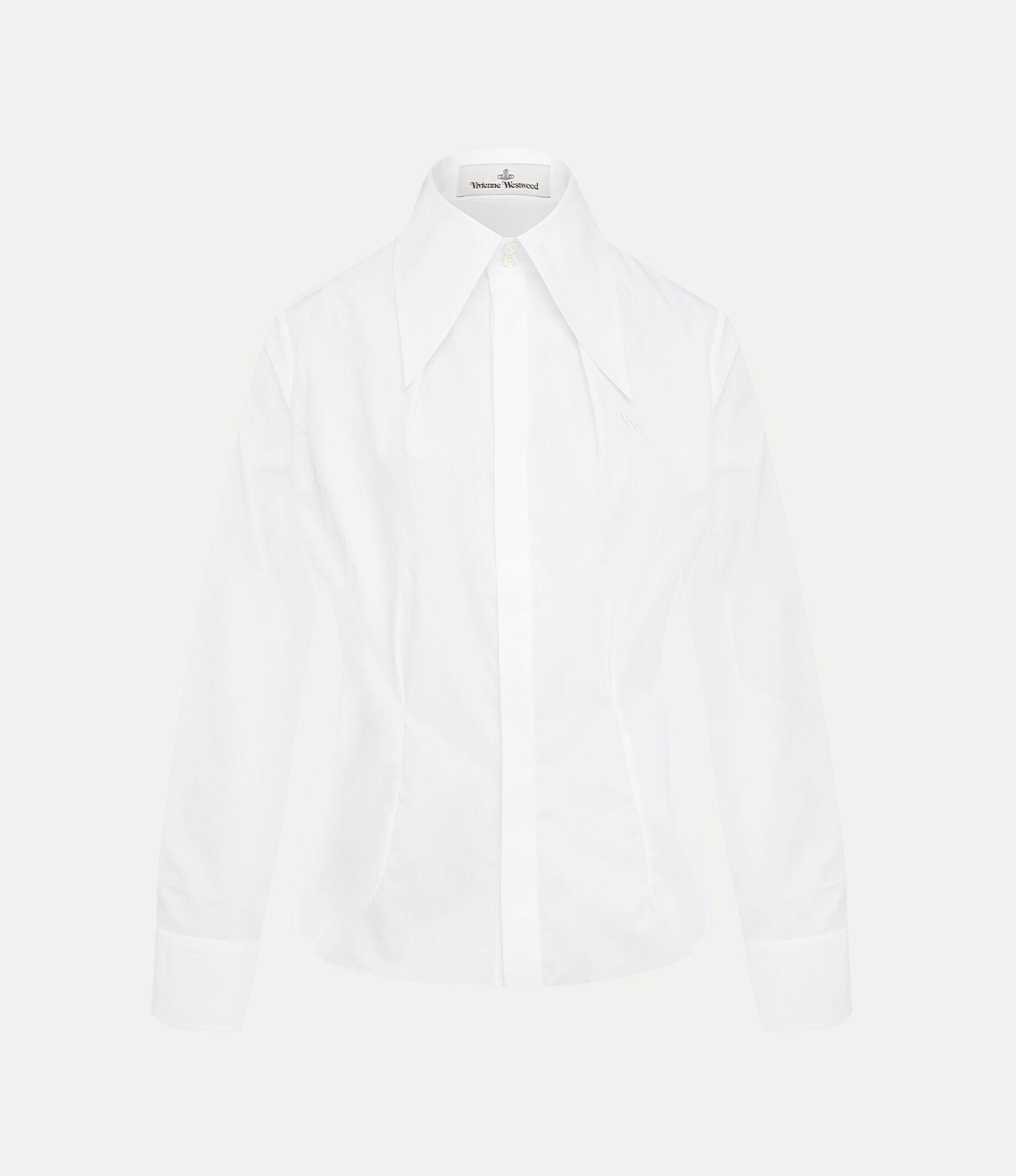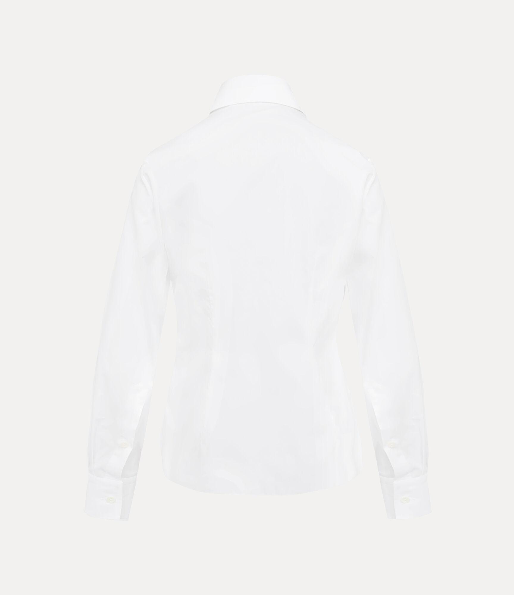 Our Violin Tuxedo shirt features the house's signature two-button collar, complete with our signature 'VW' monogram embroidery on the left-hand side of the chest. Crafted from soft organic cotton, the piece offers an exaggerated pointed collar, finished with delicate darting at the bust and waist for a sculpted, contoured shape.