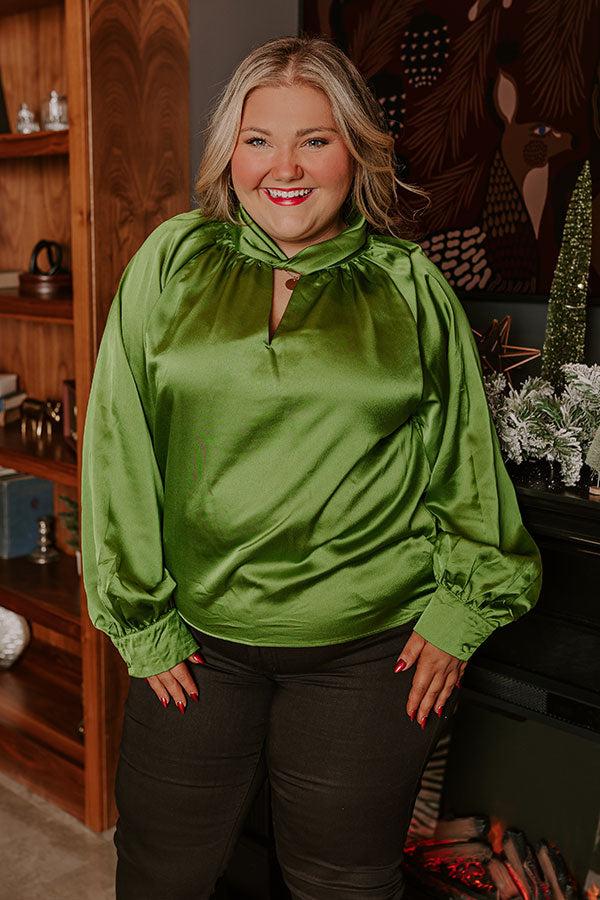 - This luxe top is the perfect VIP option! - Unlined material with a satin finish - A mock neckline with twist and keyhole details in front as well as back button closure with a keyhole detail - Long, loose sleeves with button closure cuffs - A relaxed silhouette that ends in a straight hemline Measurements 1XL : Bust 50", Hip 50", Length 25", Sleeve Length 30", Waist 50". 2XL : Bust 52", Hip 52", Length 25.5", Sleeve Length 30.5", Waist 52". 3XL : Bust 54", Hip 54", Length 26", Sleeve Length 30.5", Waist 54".