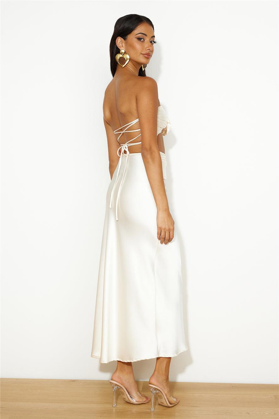 Length from waist to hem of size S: 84cm. Midi skirt. Unlined. Model is a standard XS and is wearing size XS. True to size. Non-stretch fabric. Twist front. Cold hand wash only. Polyester. Girl, you're going to look stylish in this. The VIPs Accepted Satin Midi Skirt features a twist front and luxe silky fabric. Style with the matching top and heels for all the likes.