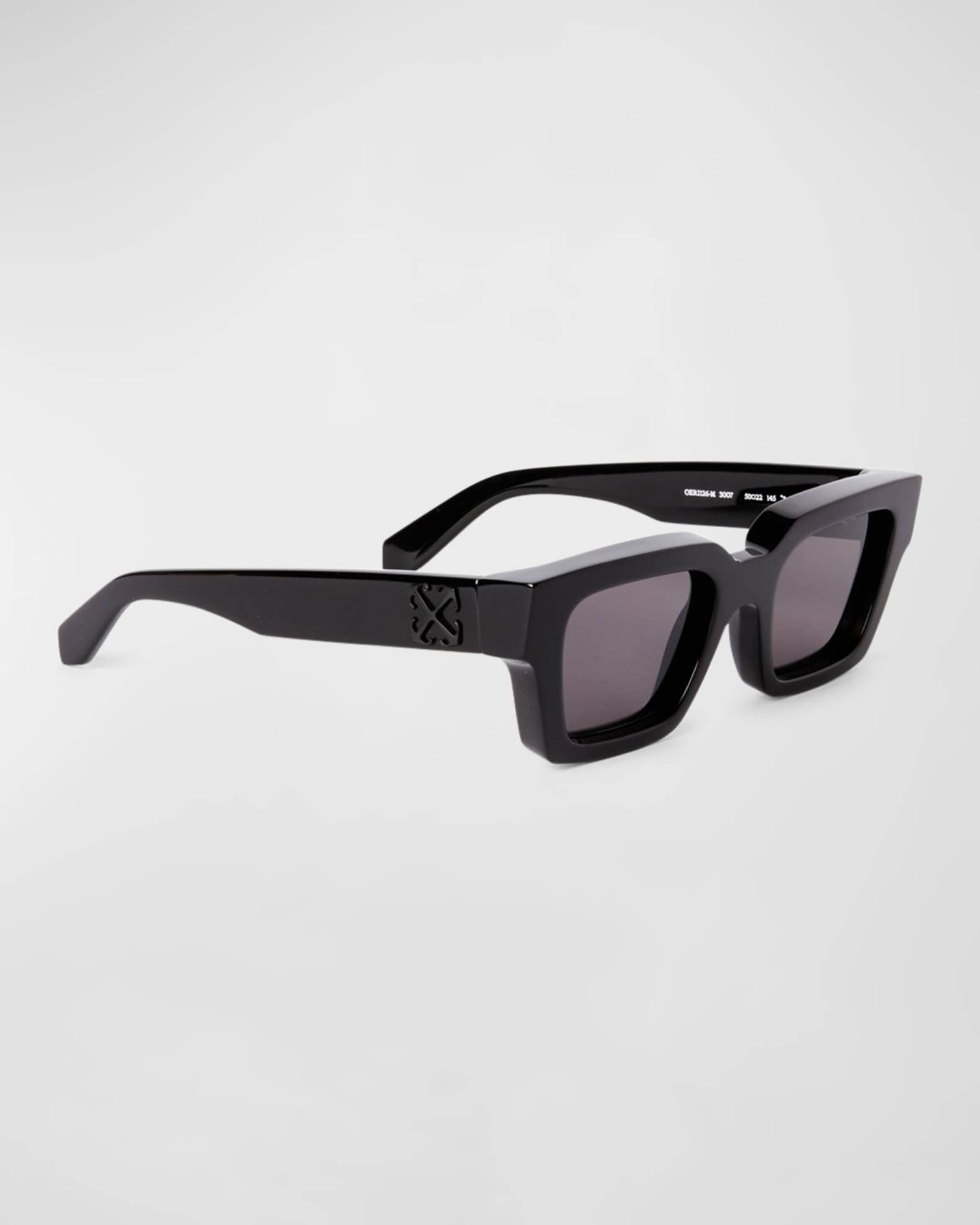 Off-White "Virgil" square sunglasses in acetate Lens/bridge/temple (in mm): 50-22-145 Solid-color lenses Signature arrow on side temples Thin, tapered arms 100% UVA/UVB protection Made in Italy Proposition 65 warning for California residents