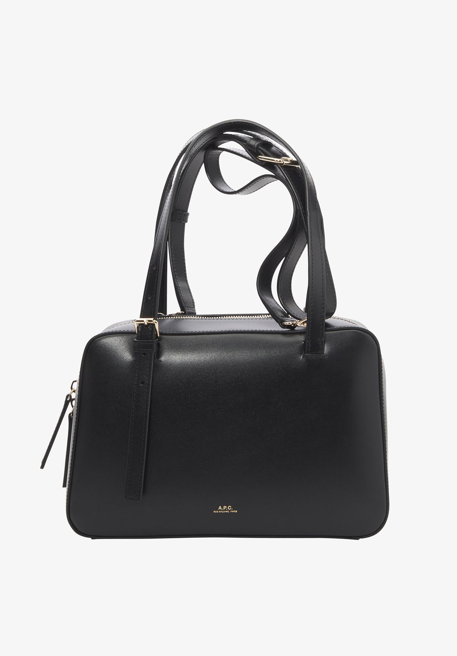 - Bag in smooth leather. - Two handles that adjust with goldtone metal buckles to carry the bag by hand or on the shoulder. - Shoulder strap adjusts with a goldtone metal buckle to carry the bag across the chest. - Closes with two leather zip pulls. - One inside pocket. - Embossed goldtone "A.P.C. Rue Madame Paris" logo.