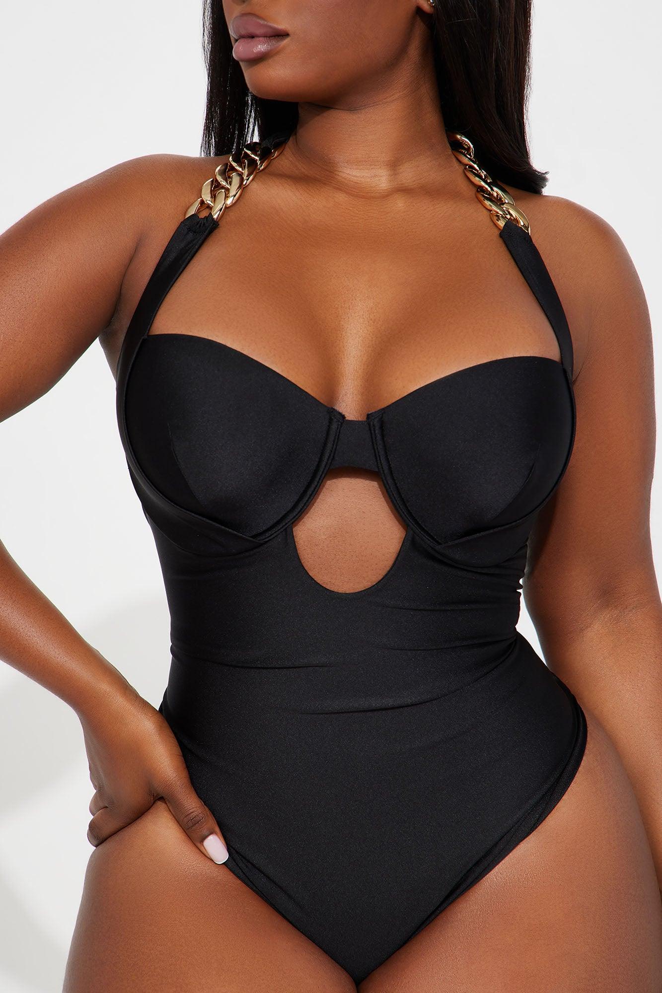 Available In Blue. 1 Piece Ensemble Swimsuit Underwire Cutout Keyhole Chain Straps Full Coverage Full Stretch Final Sale Shell/Lining: 89% Polyester 11% Spandex Imported California Proposition 65WARNING: Cancer and Reproductive Harm - www.P65Warnings.ca.gov.