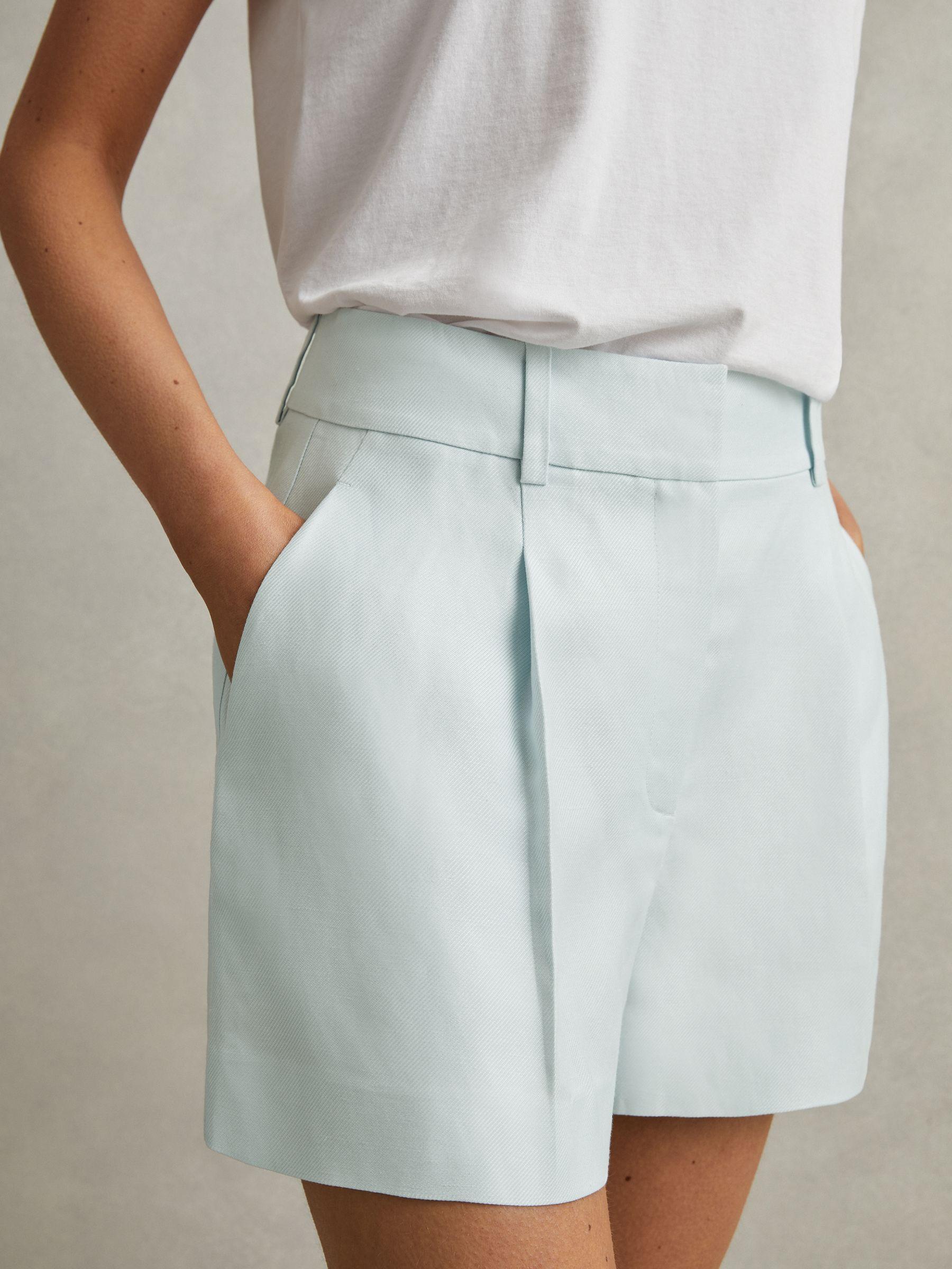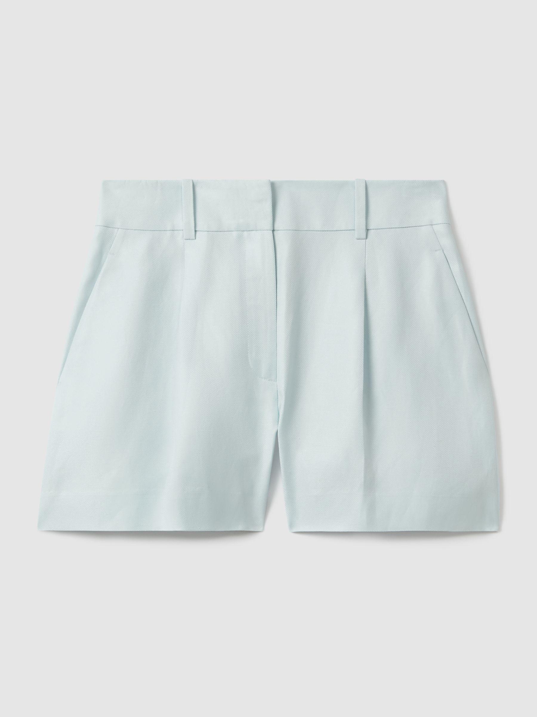 The Lori shorts are made from a viscose-linen blend for a soft woven feel and a slight reflective sheen. They’re cut in a high-rise shape with front pleats and they finish above the knee. Matching blazer Viscose-linen blend High rise Side pockets Front pleats
