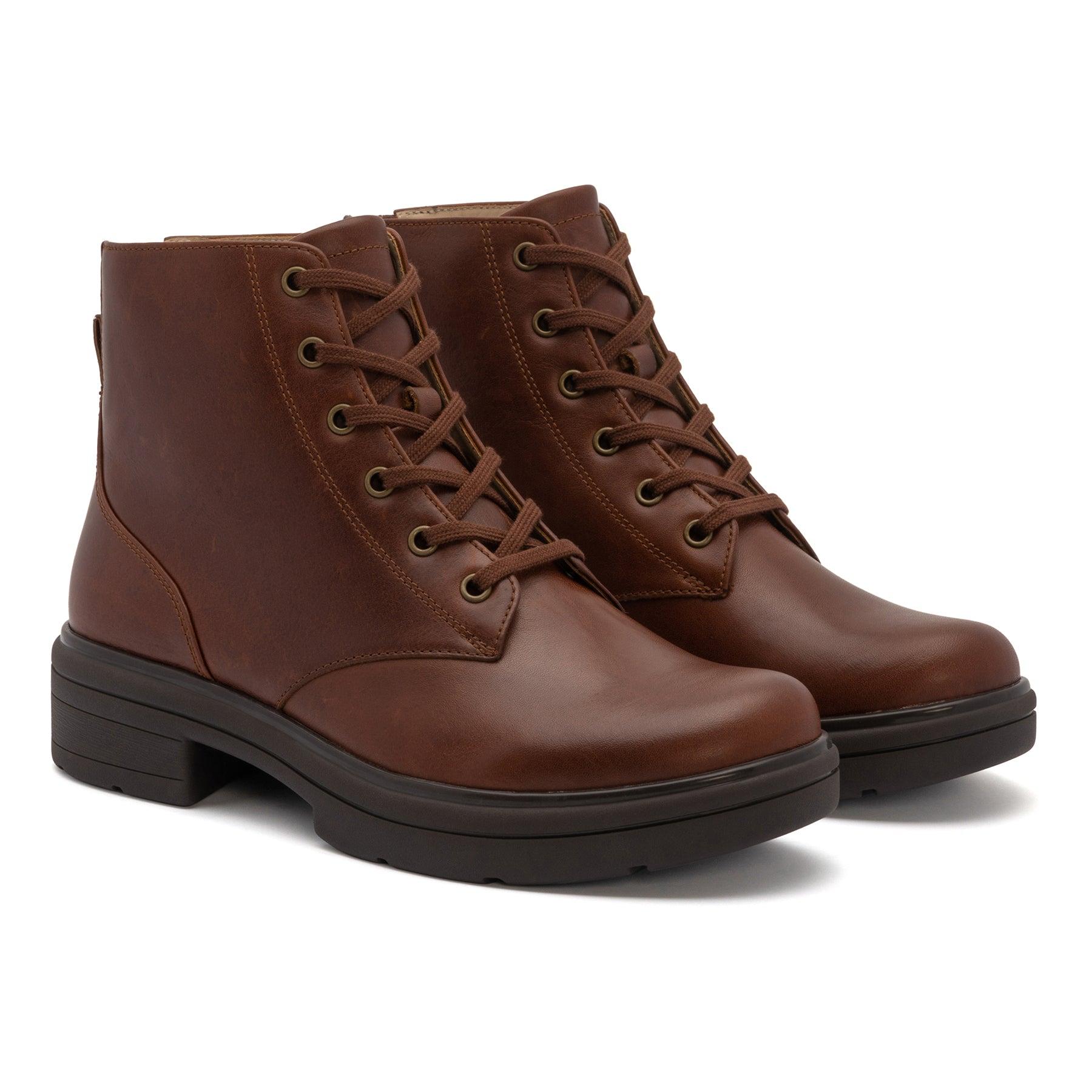 Warm and comfortable, the ABEO Vista Lace-Up Boots Metatarsal keep your feet cozy and supported in colder weather. Built-in orthotics in these premium women’s boots provide excellent arch and heel support, ensuring your strides are stable and comfortable throughout the day. An adjustable lace-up vamp provides a customized fit to secure your feet in place. Rugged and durable, these lace up boots are sure to be a new favorite for your outdoor adventures. Superior Arch & Heel Support - Exceptional arch support helps reduce pressure on joints by properly distributing weight and balance. Our cushioned deep heel cup helps absorb shock, preserve your natural heel pad, and properly align the body. Water-Resistant Leather Upper & Lining - Crafted with water-resistant leather uppers for a premium look that you can enjoy for years to come. A soft and breathable genuine leather lining helps keep feet cool and dry. BIOsystem® Comfort Technology - Our exclusive BIOsystem® orthotic footbed delivers a perfect balance of anatomical support, responsive cushioning and balanced alignment for exceptional all-day comfort. Adjustable Lace-Up Vamp - An adjustable lace-up vamp secures feet in place and provides a snug and customized fit for hours of wear, while a spacious toe box helps reduce pressure on toes. Heel Height: 1.77 inches with a 0.79 inch platform - A stylish 1.77-inch heel height and a 0.79-inch platform height helps these shoes stand out. Shaft Height: 4.33 inches - A comfortable 4.33-inch shaft height secures ankles and offers protection from the elements. Sturdy & Durable Rubber Outsole - Flexible and resistant rubber outsole offers increased traction, abrasion resistance and phenomenal sturdiness. Help Relieve Foot Pain & Fatigue Ergonomic cushioned soles soften steps to help foot and heel pain. Deep heel cup helps stabilize feet and align the body to minimize fatigue. Wider fit offers more room for wide or swollen feet. Help Alleviate Common Foot Conditions Metatarsalgia: Metatarsal footbed option has built-in metatarsal pad to help with forefoot pain.