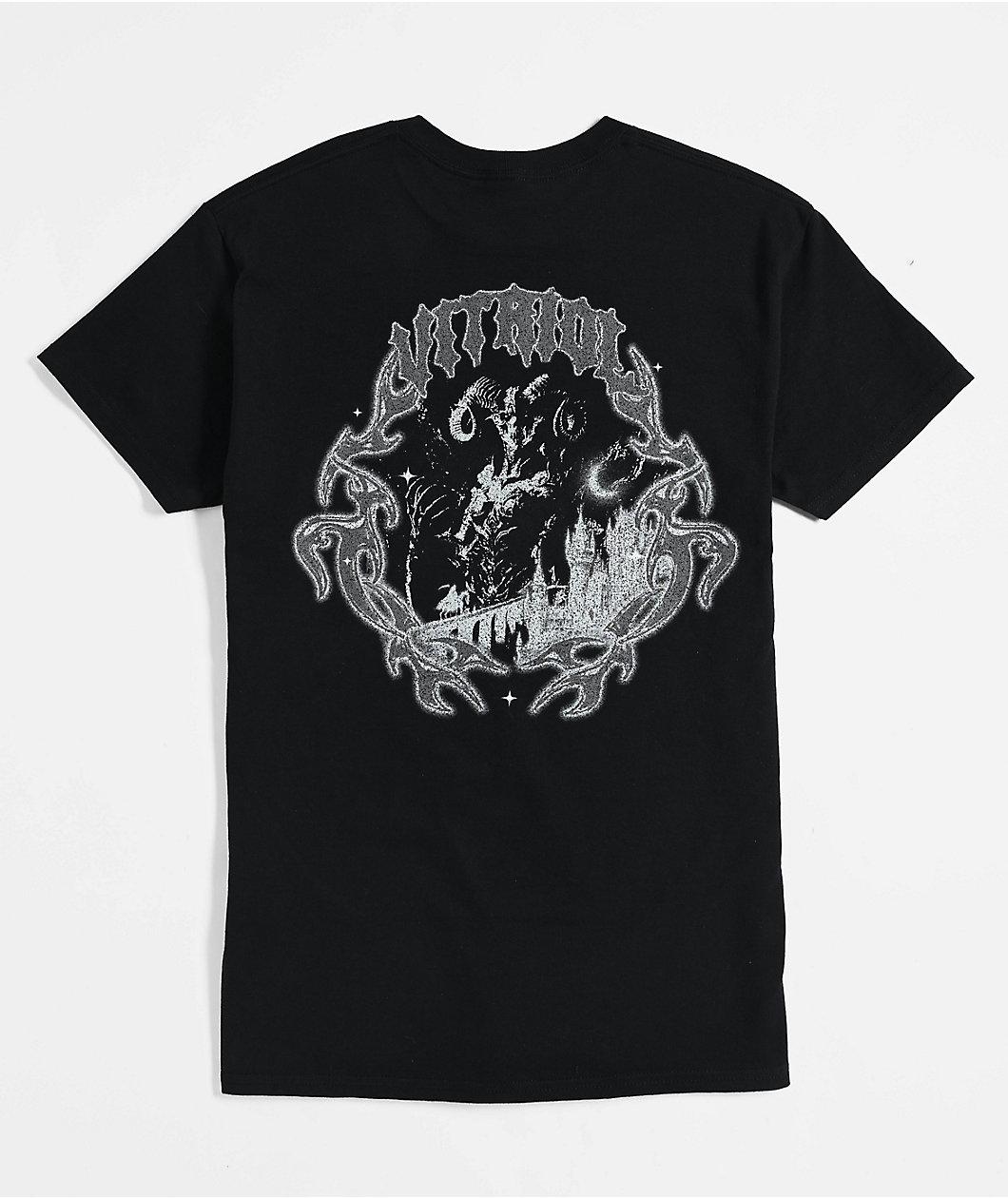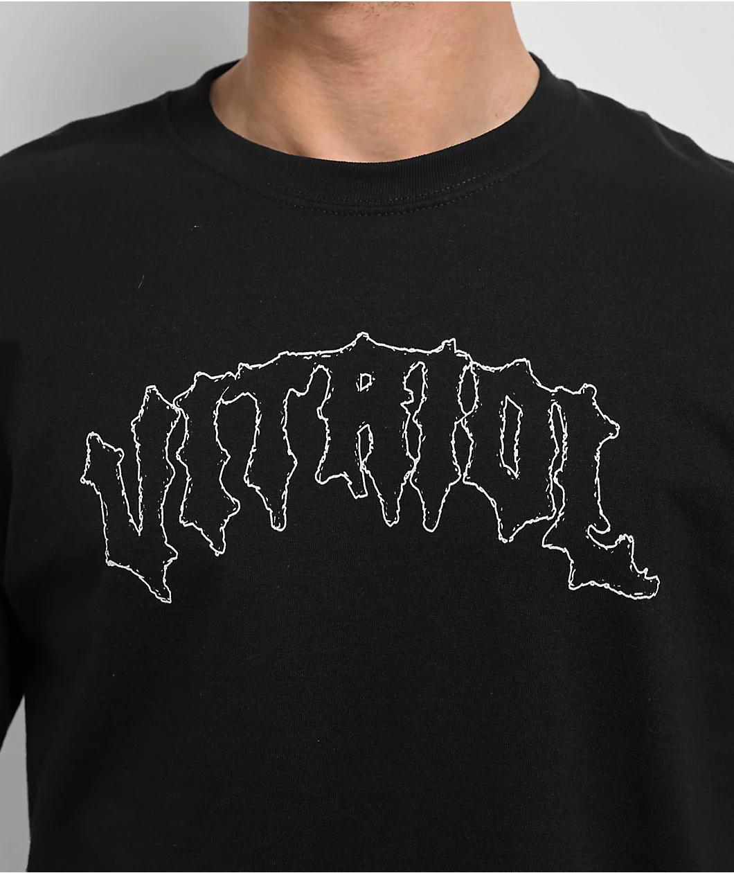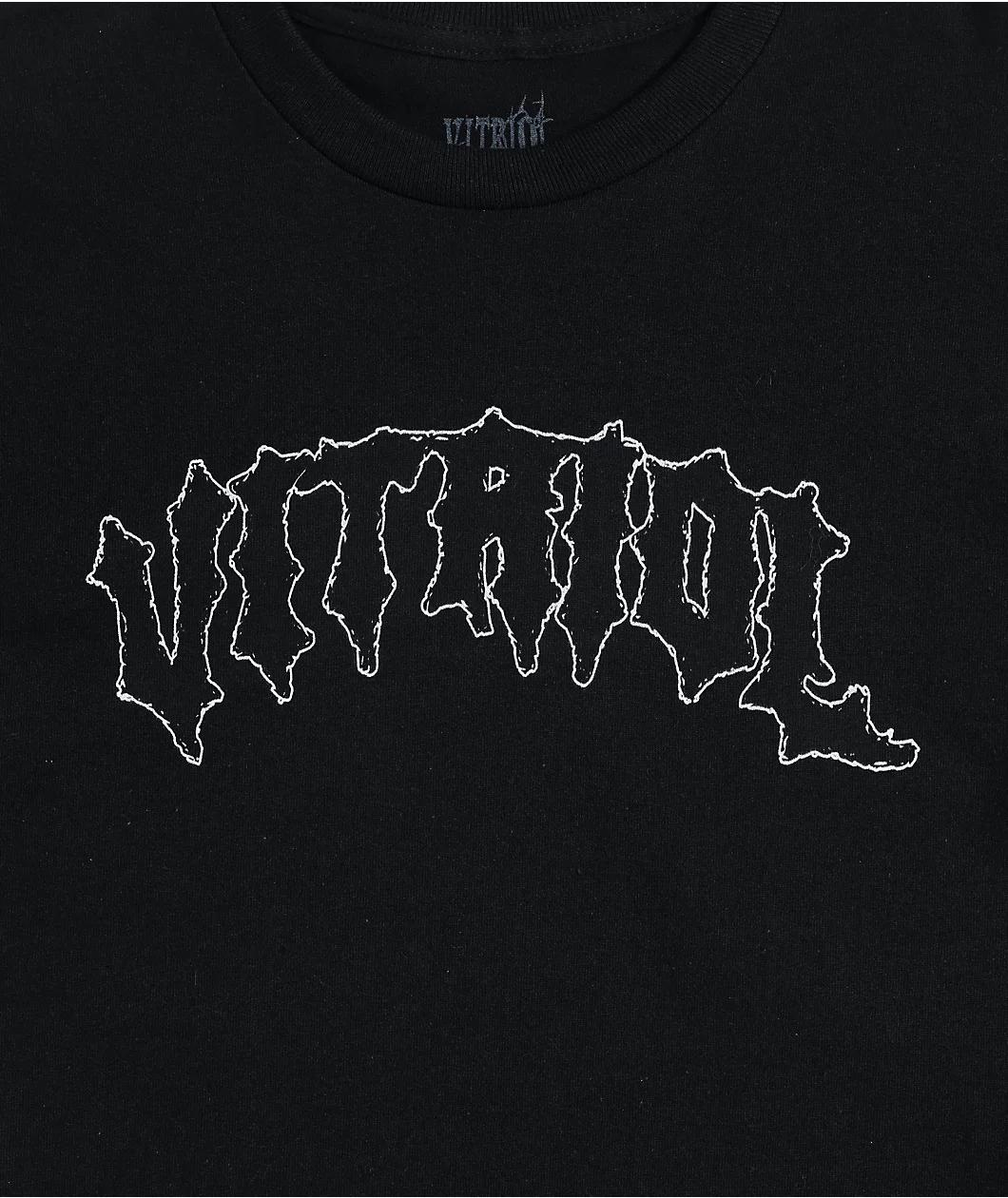 Vitriol presents the Cyber Demon t-shirt in a black colorway perfect for adding a goth vibe to any outfit. Outline branding on the chest has an ominous look furthered by black and white graphics on the back of an eerie demonic creature. The greyscale