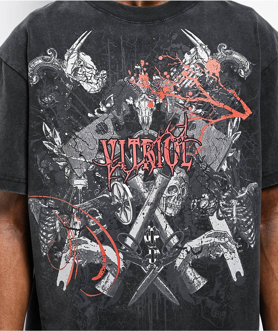 Presented by Vitriol in a black hue with a washed treatment for a worn, lived-in look, the Layered Edgy t-shirt displays an intricate screen-printed graphic with distressed cracking to further emphasize the vintage vibe. Following a tough Western mot
