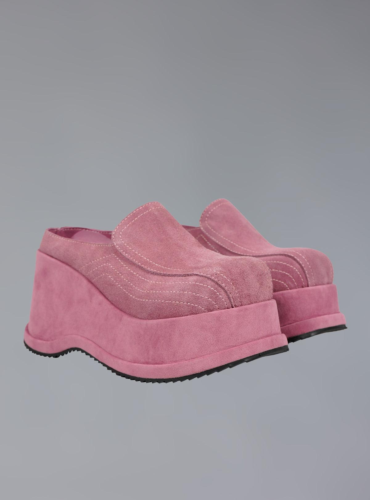 The Vivi Platform is a suede slip-on platform with a matching chunky sole. Measuring 3" in the front to 4" in the back, the shoe has a slight sole incline for more comfort and mobility. Comes in multiple colorways. Upper is 100% Suede and the sole is man-made. UPFRM-1193 Imported