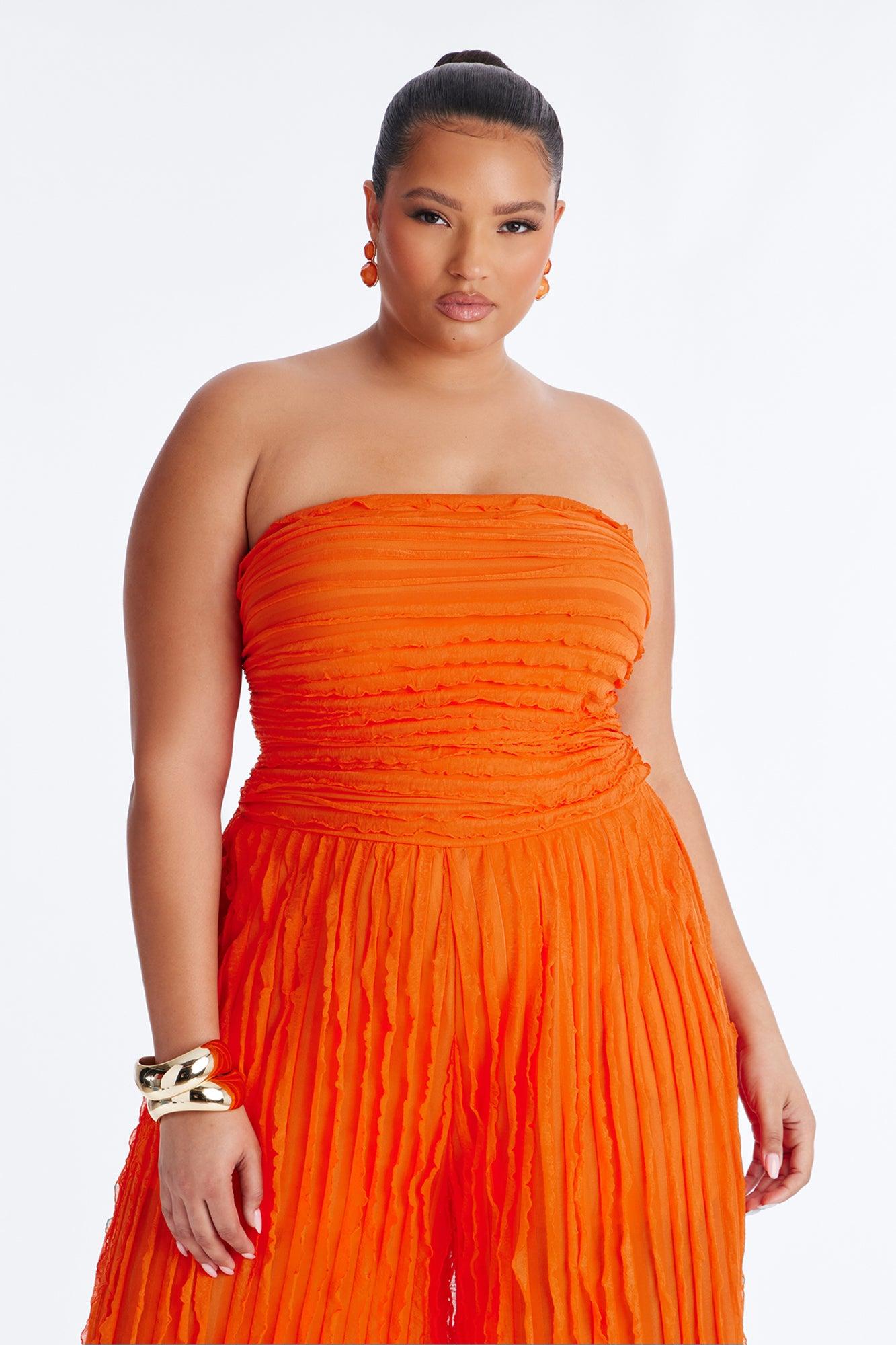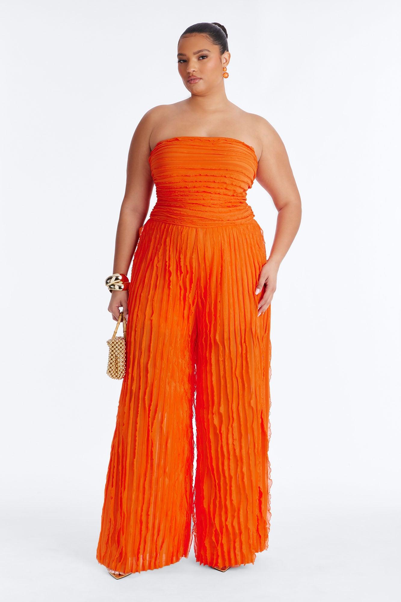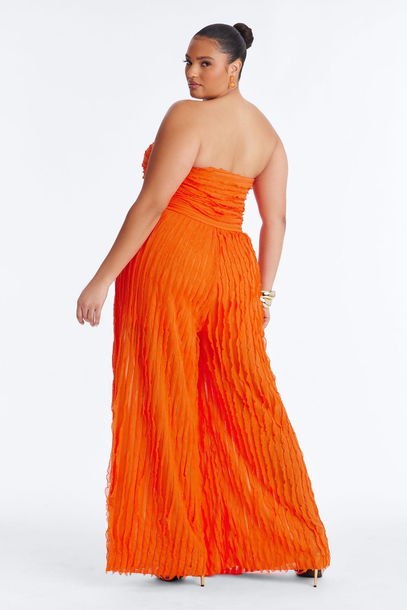 Viviana Textured Wide Leg Jumpsuit - Orange