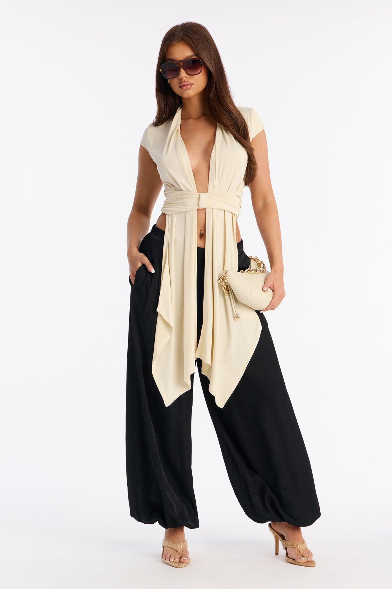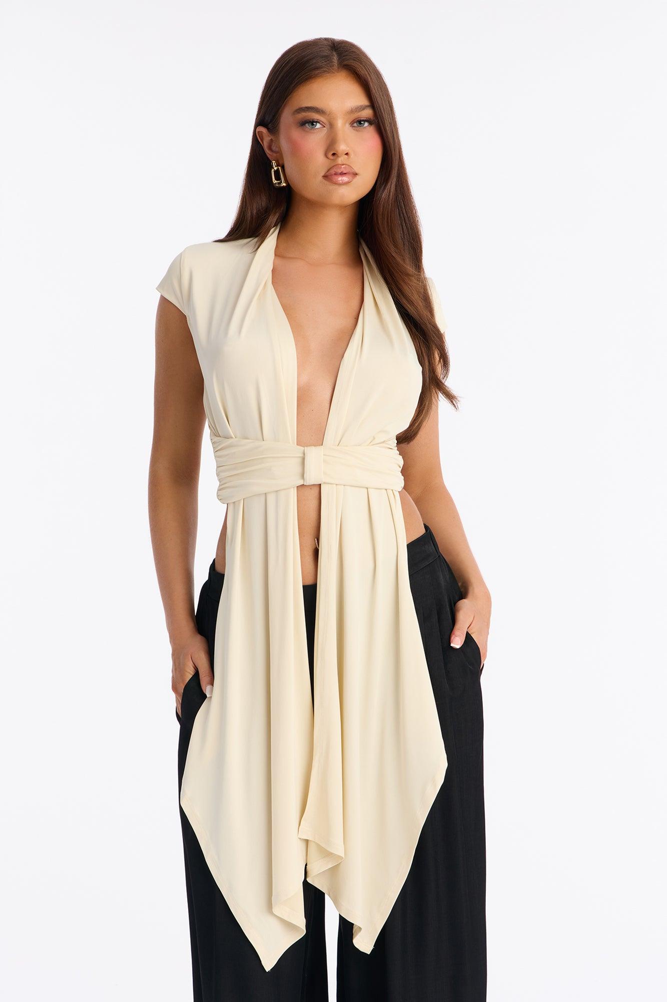 Vividly Sharp Drape Short Sleeve Top - Cream Female