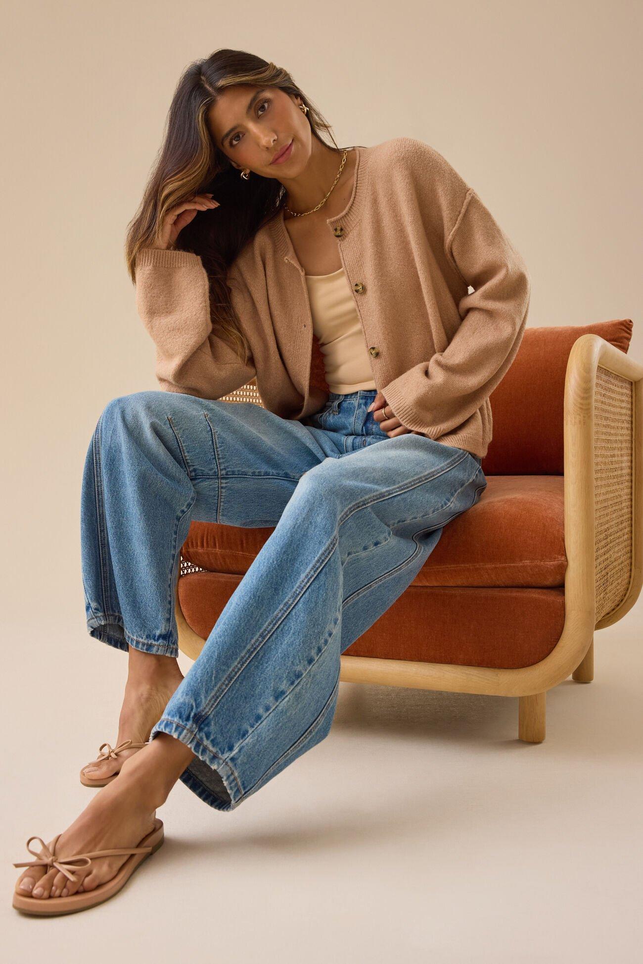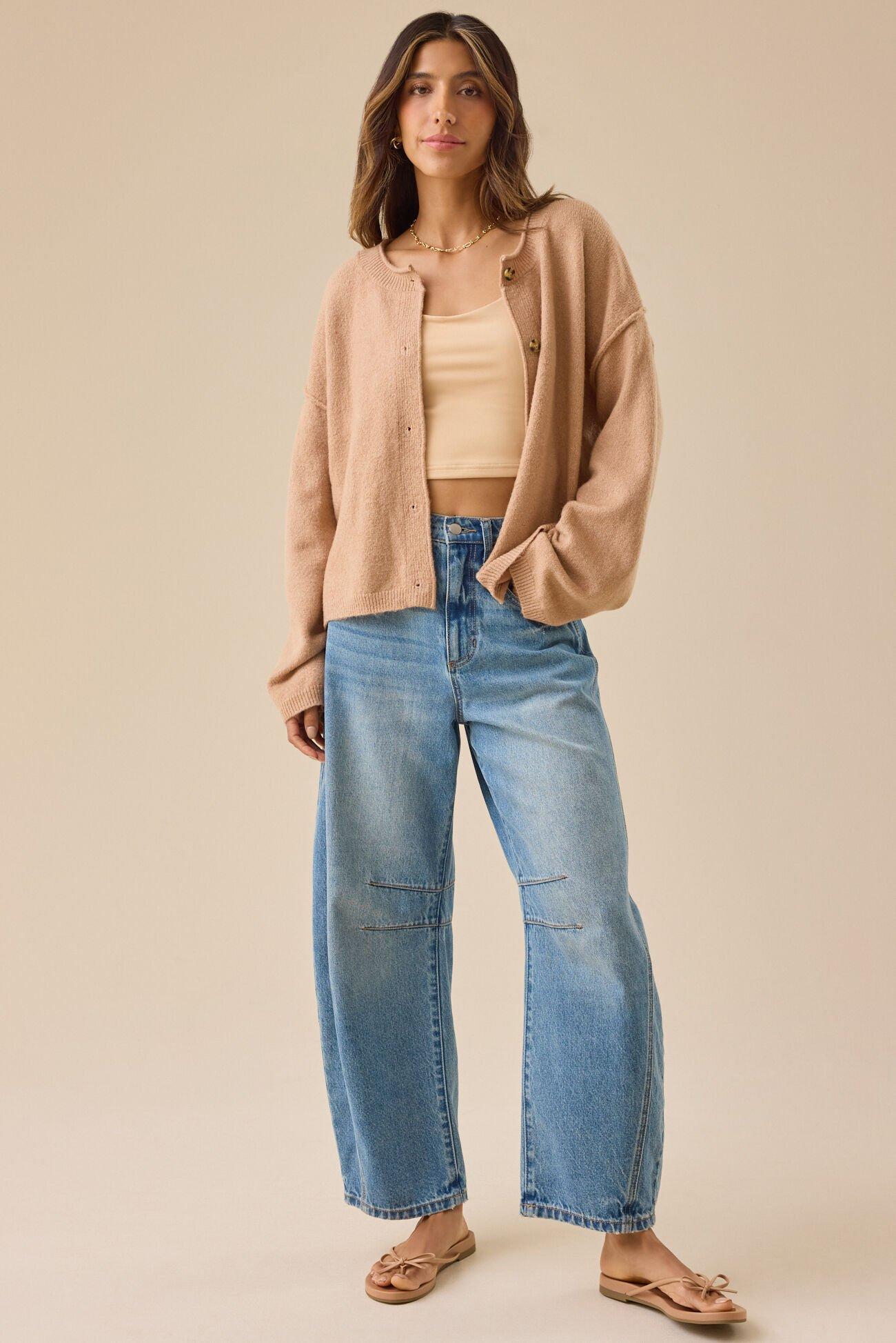 This long sleeve boxy button-up cardigan is incredibly soft and cozy, making it perfect for breezy nights. Its relaxed fit and easy style make it a go-to layering piece.