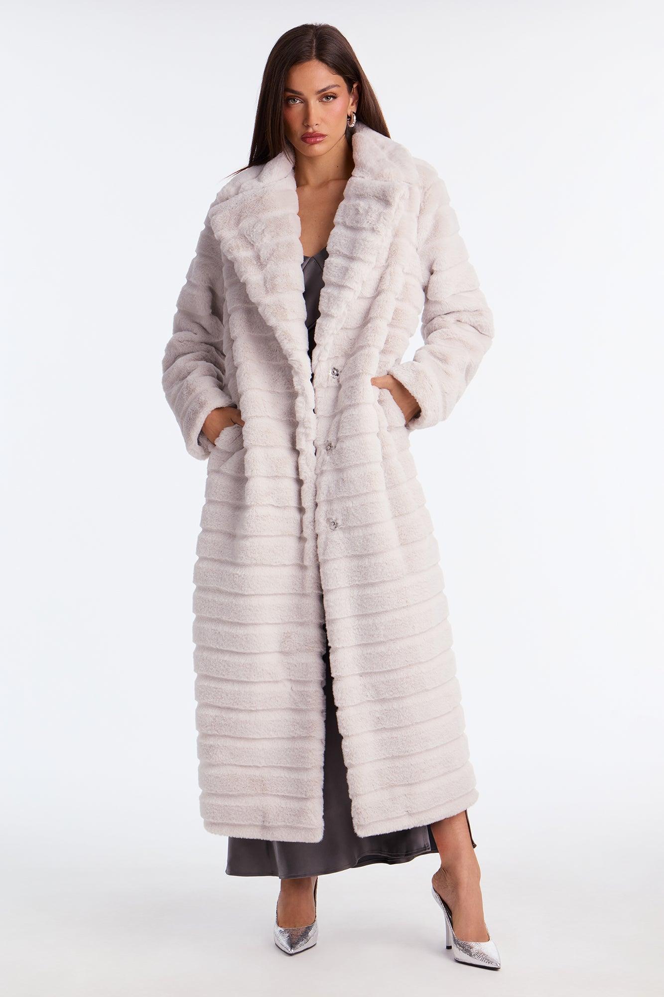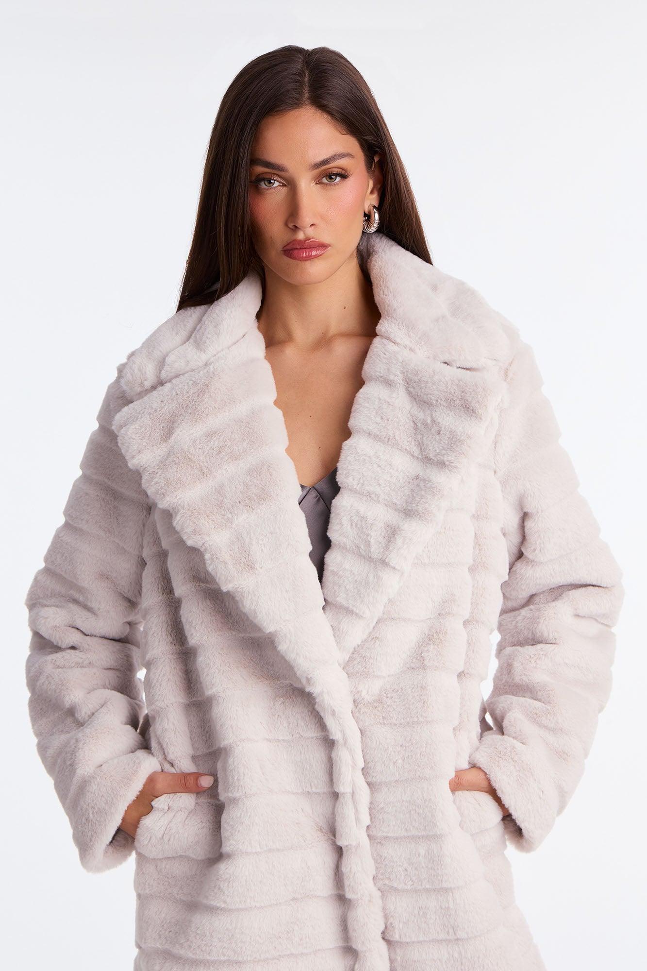 Available In Chocolate, Grey, Hot Pink And Stone. Trench Coat Lapel Collar Long Sleeve Faux Fur Snap Button Closure Fully Lined Self/Lining: 100% Polyester Imported California Proposition 65WARNING: Cancer and Reproductive Harm - www.P65Warnings.ca.gov.