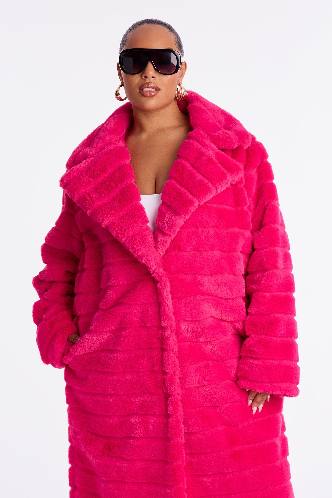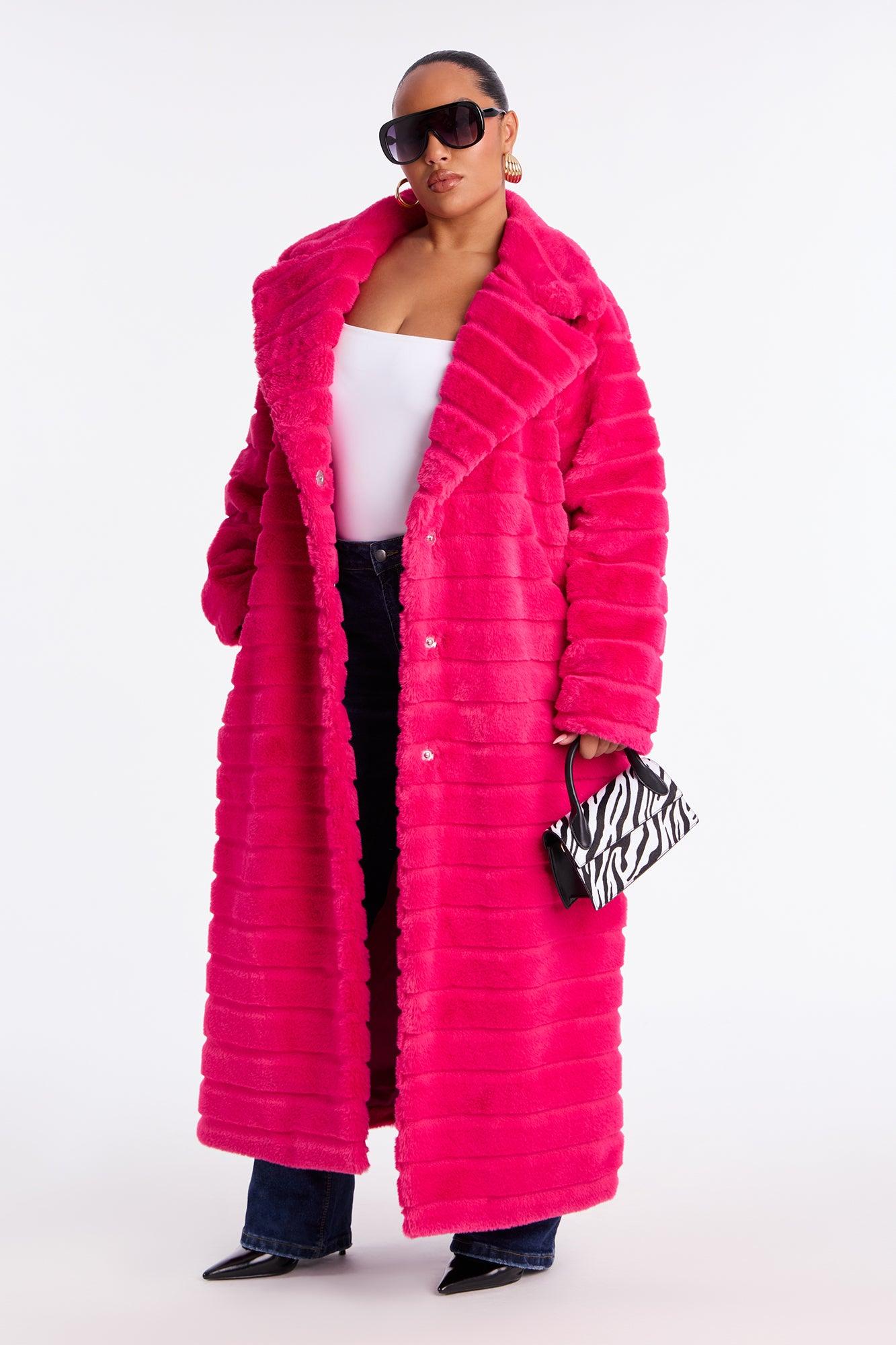 Available In Chocolate, Grey, Hot Pink And Stone. Trench Coat Lapel Collar Long Sleeve Faux Fur Snap Button Closure Fully Lined Self/Lining: 100% Polyester Imported California Proposition 65WARNING: Cancer and Reproductive Harm - www.P65Warnings.ca.gov.