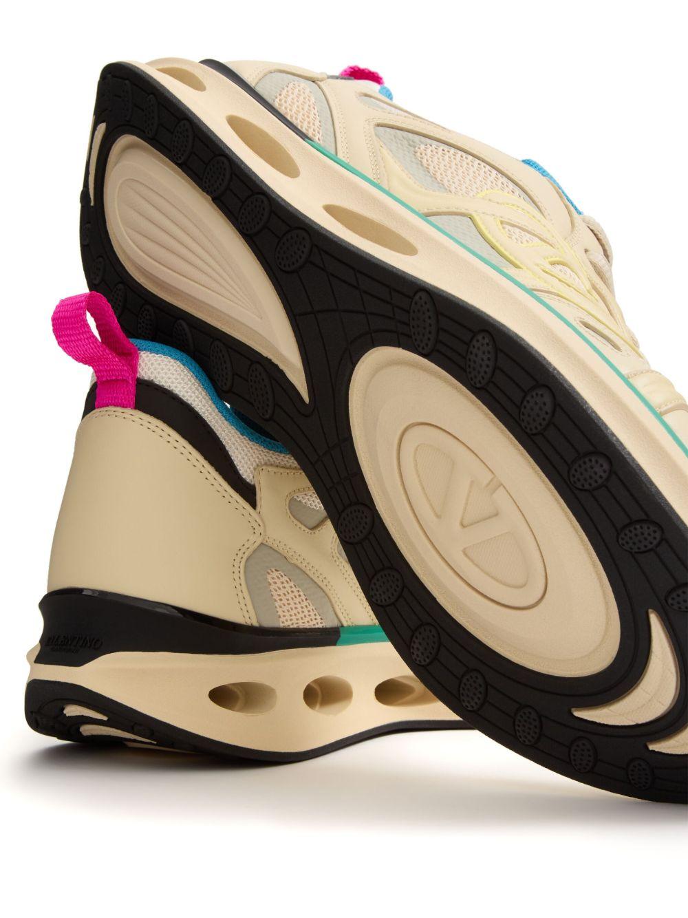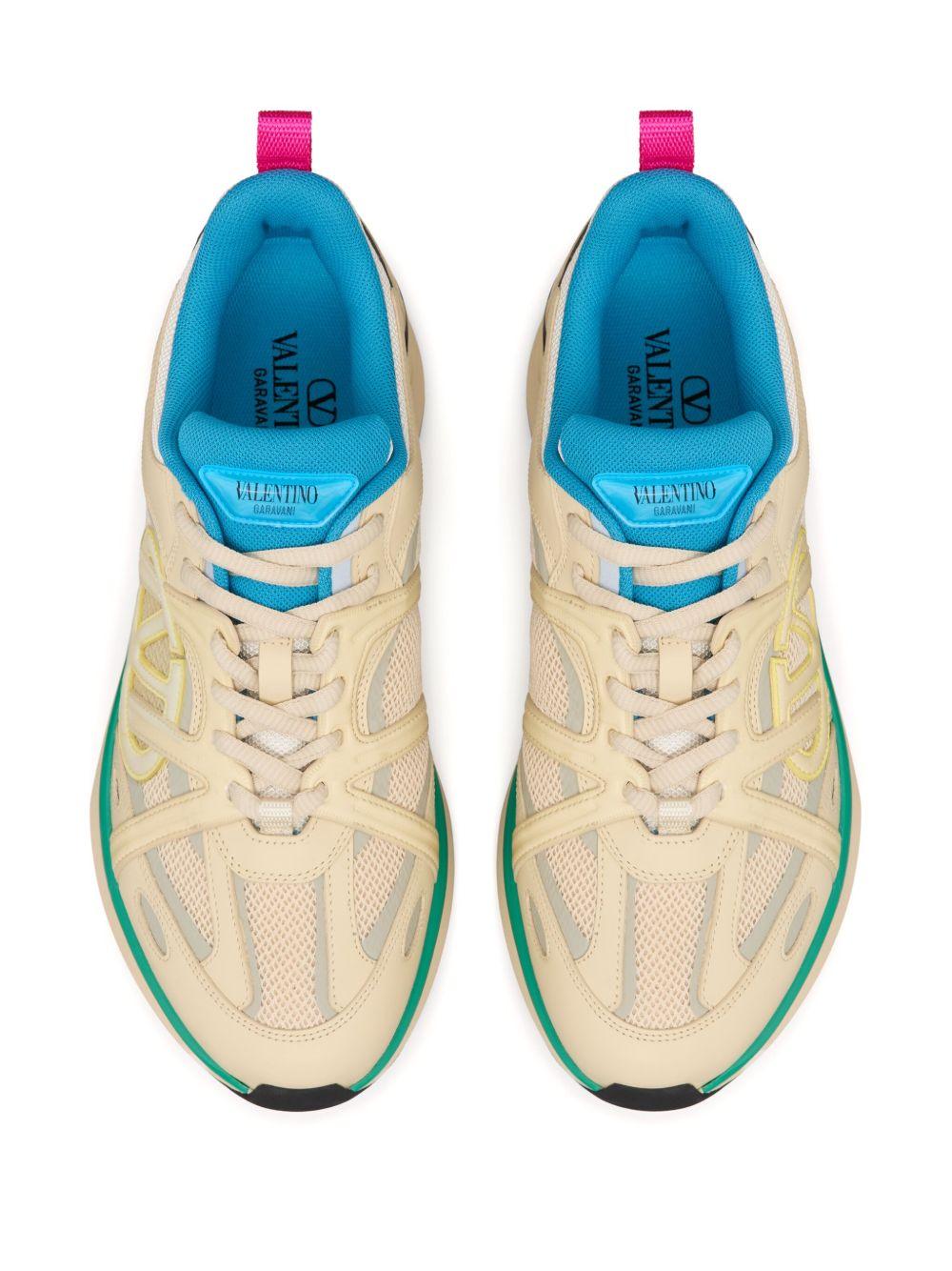 Valentino Garavani VLogo Easyjog leather sneakers | Neutrals | beige/multicolour | calfskin | panelled design | mesh panelling | logo patch to the side | logo patch at the tongue | logo at the sole | perforated detailing | round toe | front lace-up fastening | pull-tab at the heel | branded insole | chunky rubber sole | Fabric/Fabric/CALFSKIN/Rubber | Low-Tops | Sneakers | Shoes | Men